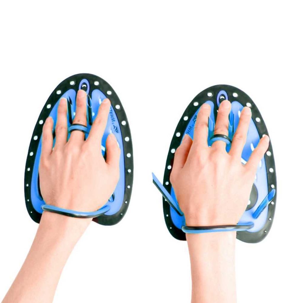 1 Pair Swimming Paddles Hand Professional Beginner Training Paddle Aquatic Gloves with Adjustable Strap Diving Hand Wedded Fitness Equipment for Adult and Kids (Blue)
