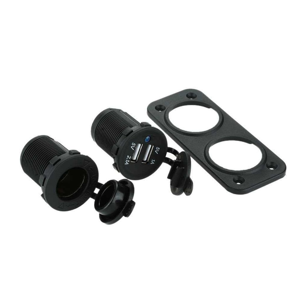 2 USB 5V/1A 5V/2.1A Sockets with Cigarette Lighter Power Socket for Car Truck Motorcycle Boat for ATV