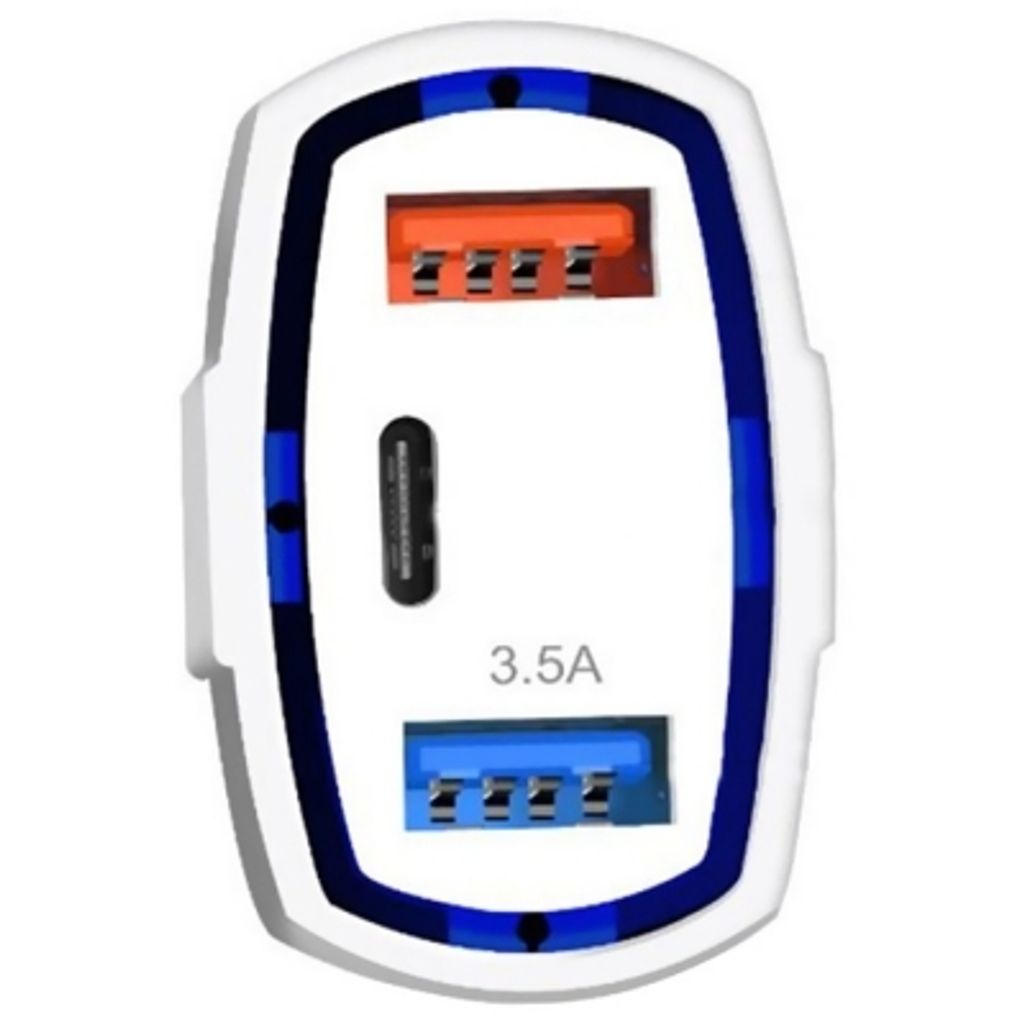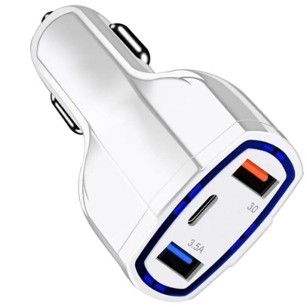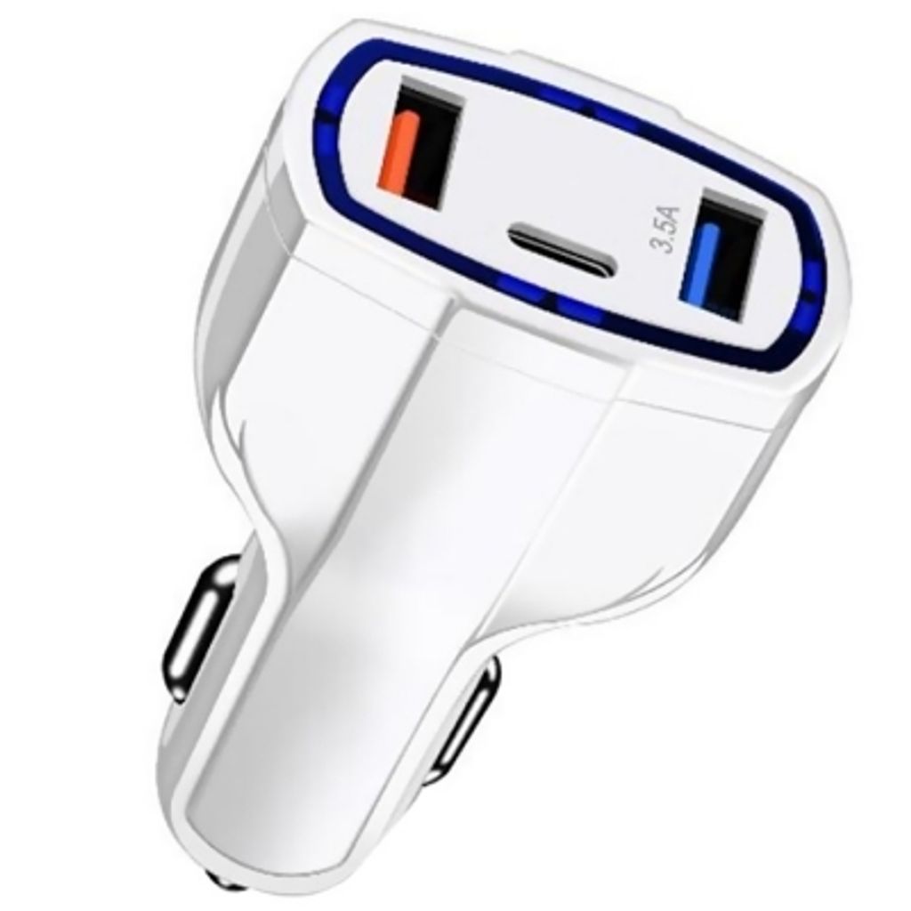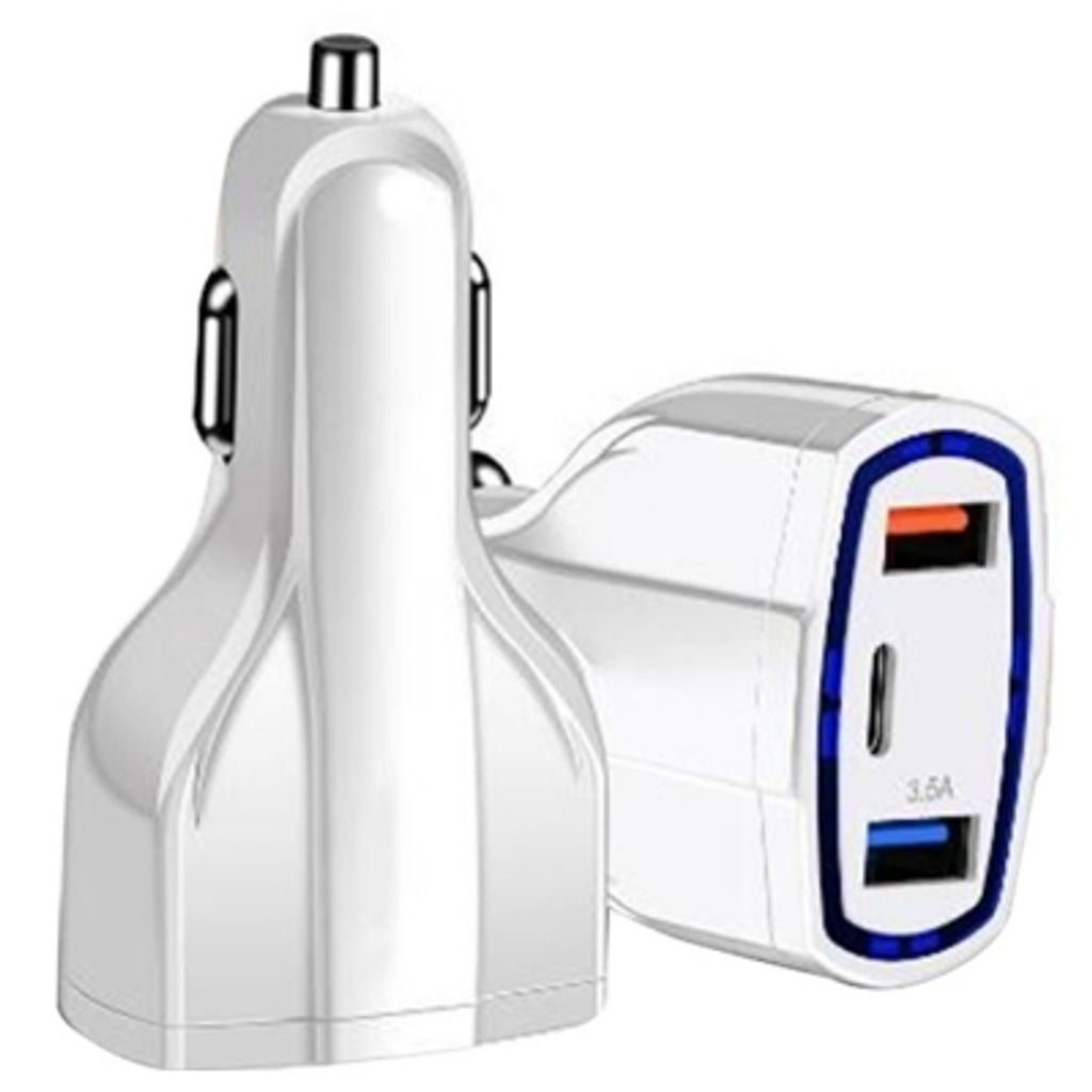 3-in-1 Car Phone Charger QC3.0 Car Charger Dual USB With Type-C Interface Fast Charge (WHITE)