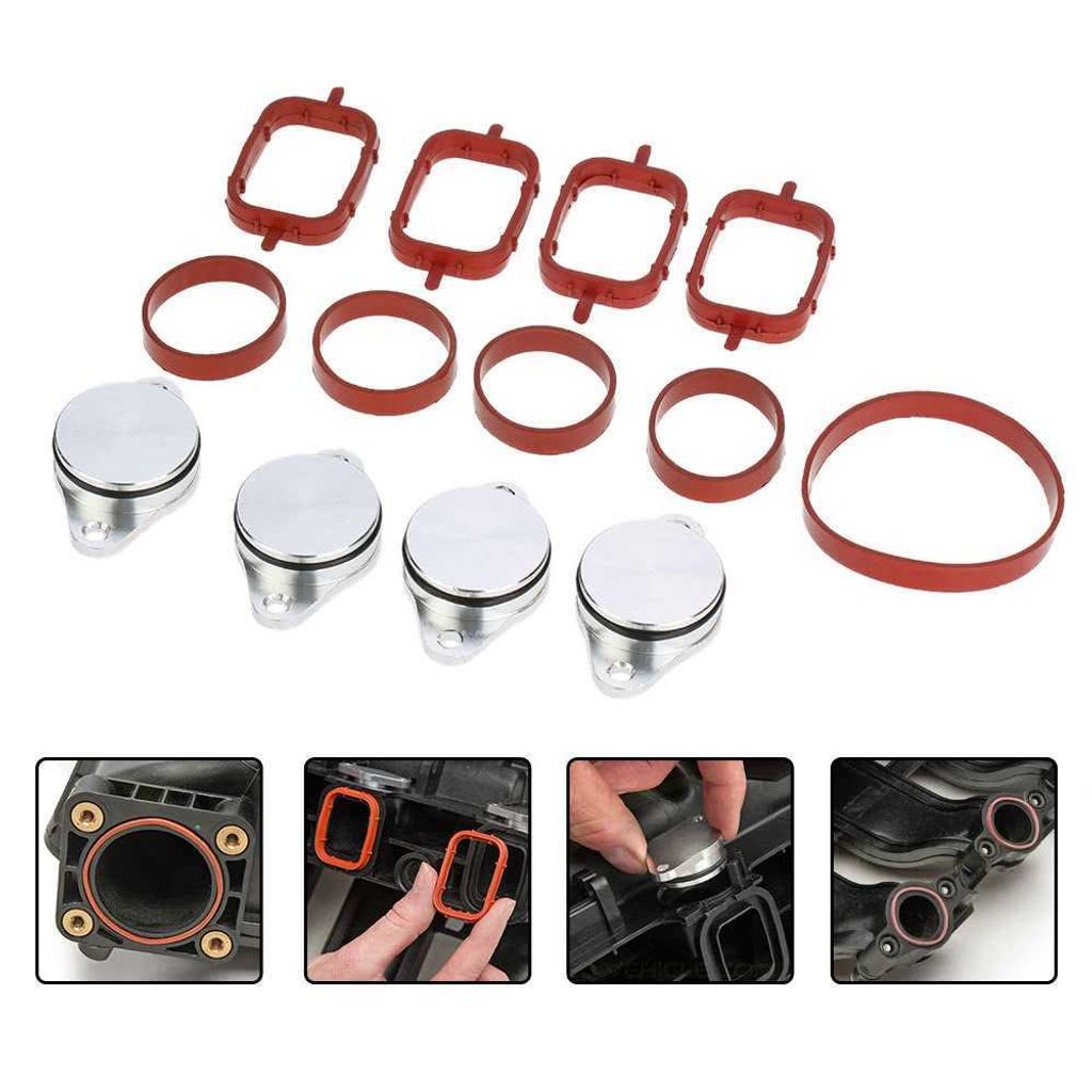 4 PCS 33mm Diesel Swirl Flap Blanks Replacement Bungs with Intake Manifold Gaskets for BMW 320d 330d 520d 525d 530d 730d (black red)