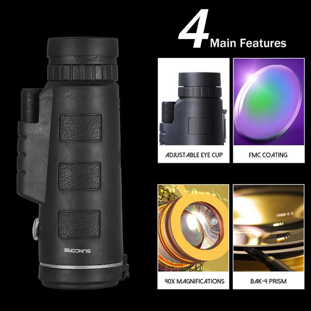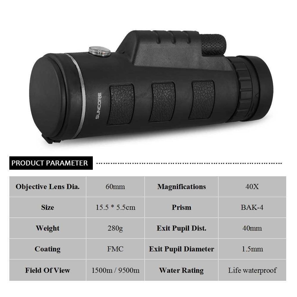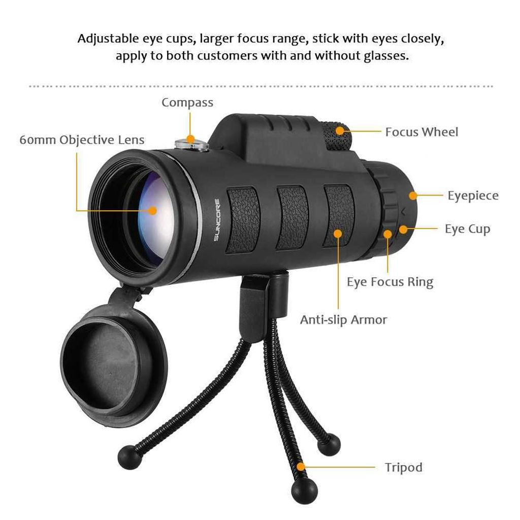 40X60 High Power Magnification Monocular Telescope with Eye Cups Compass and Tripod Wide-angle Monocular Scope