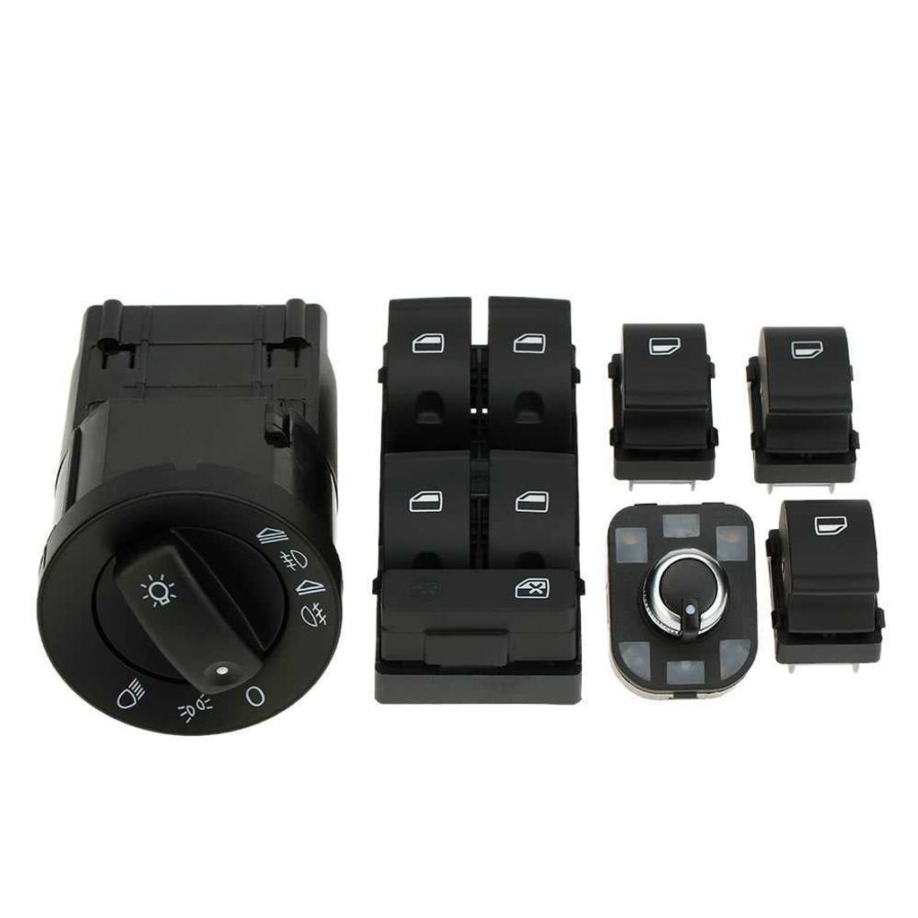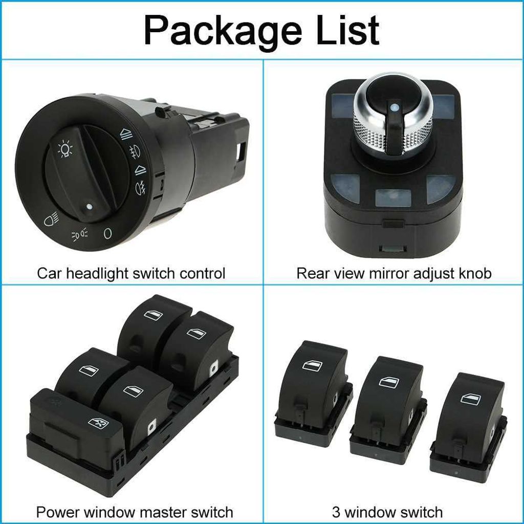 Switch Control Set: 1 * Car headlight switch control + 1 * Power window master switch + 1 * Rear view mirror adjust knob + 3 * Window switch