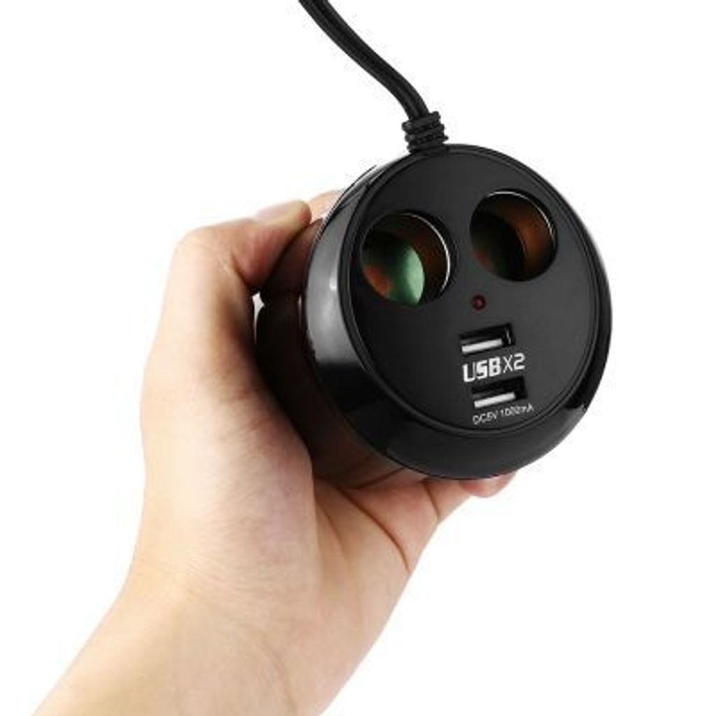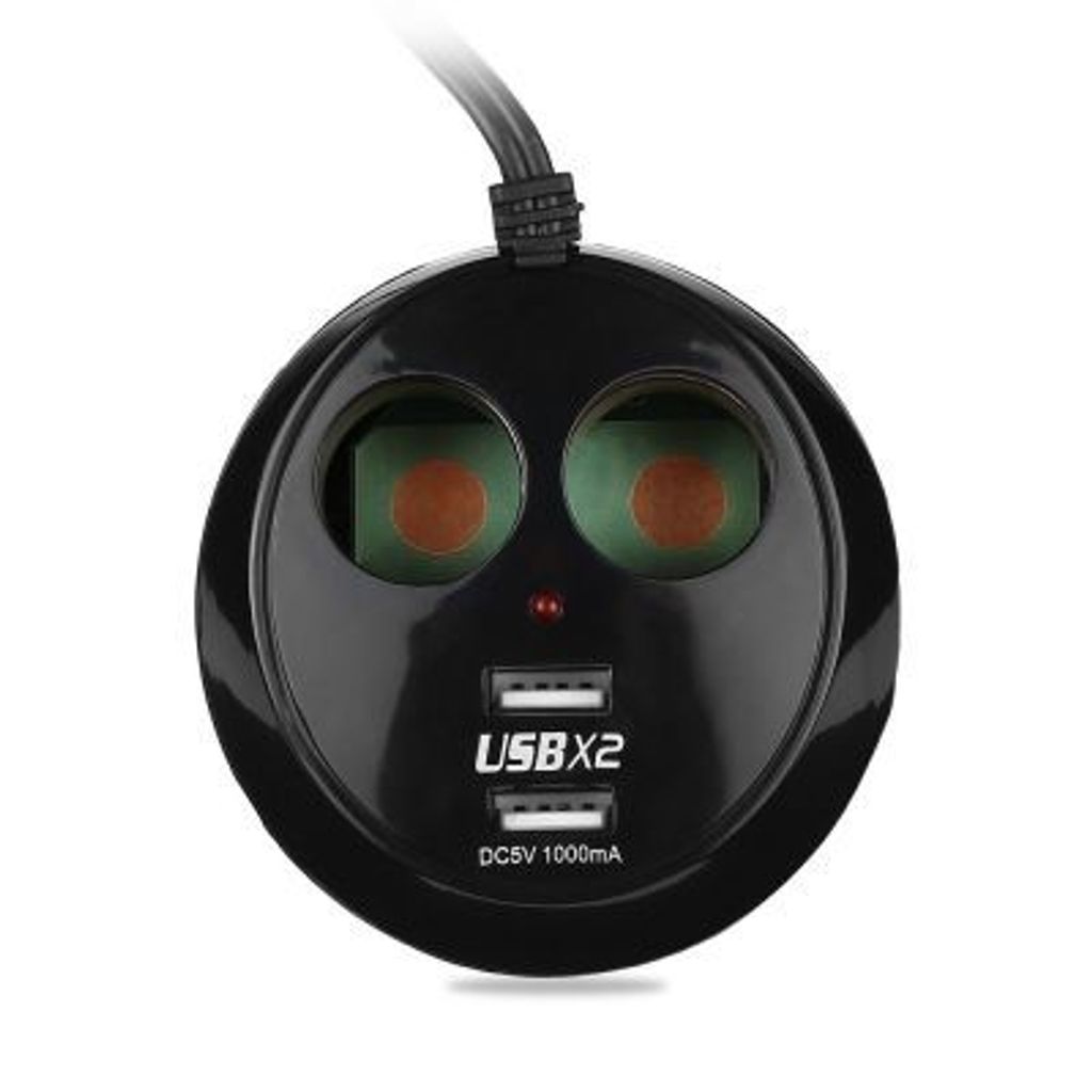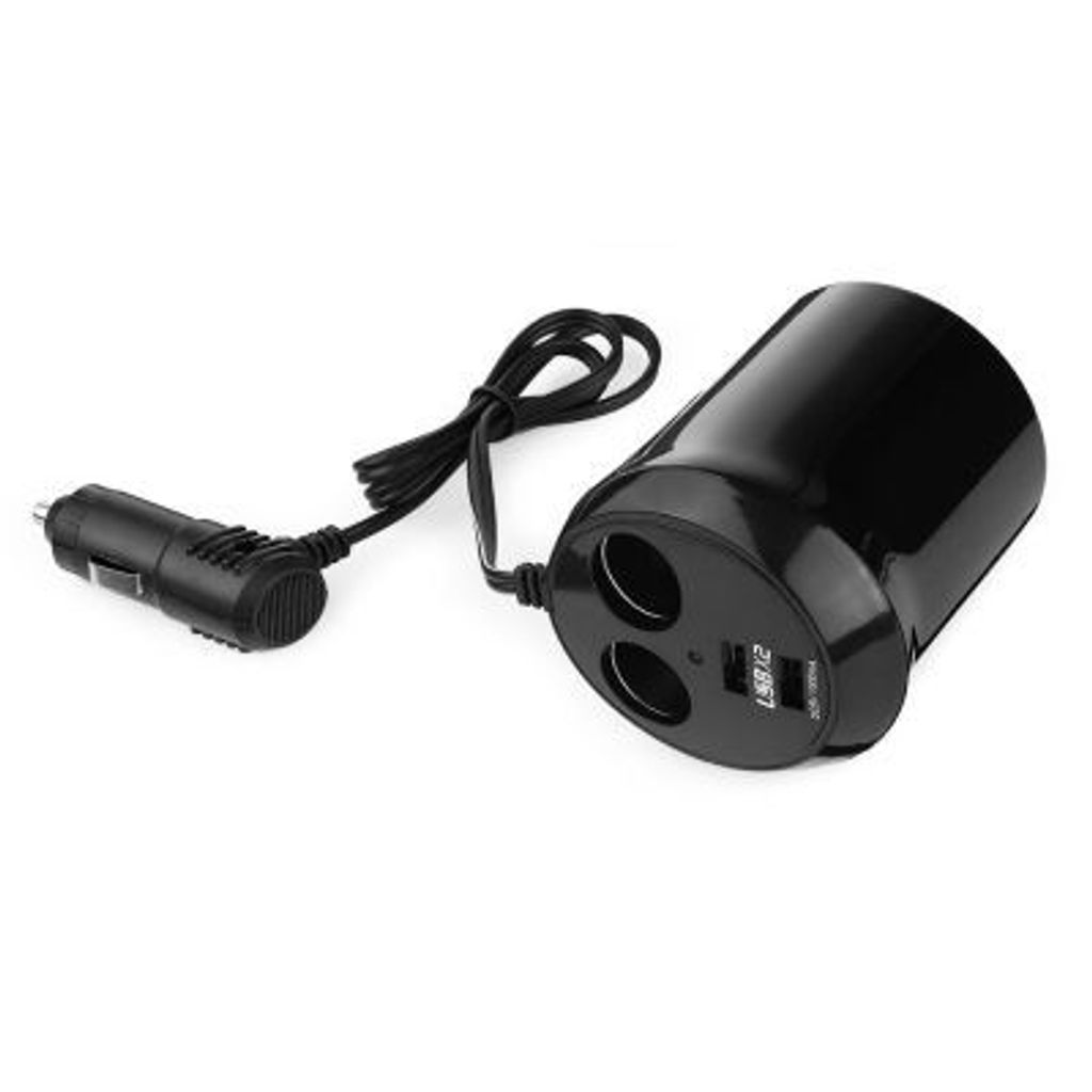 Car Multifunctional 2 Sockets Cigarette Lighter with Dual USB Charging Ports (BLACK)