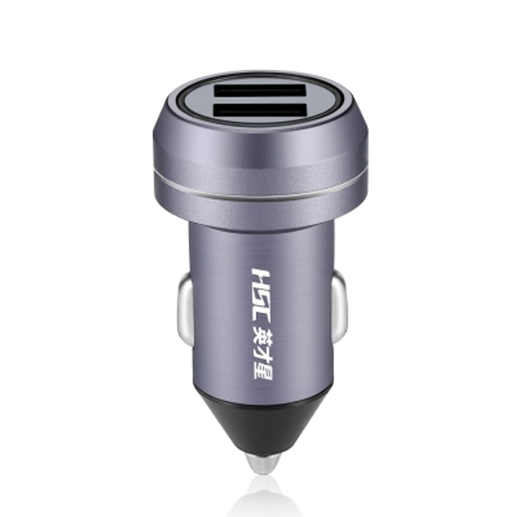 HSC YC38 Car Charger Dual USB High Current Safety Hammer (GRAY)