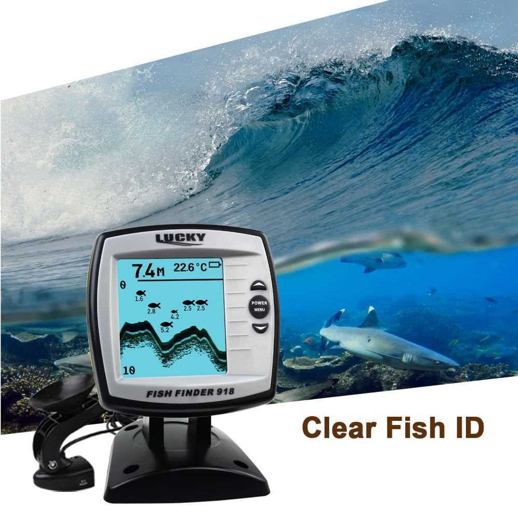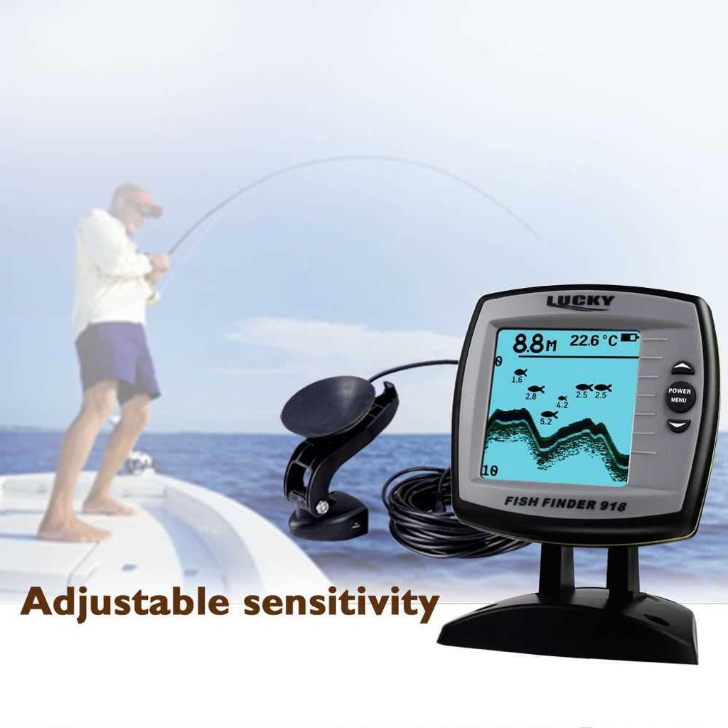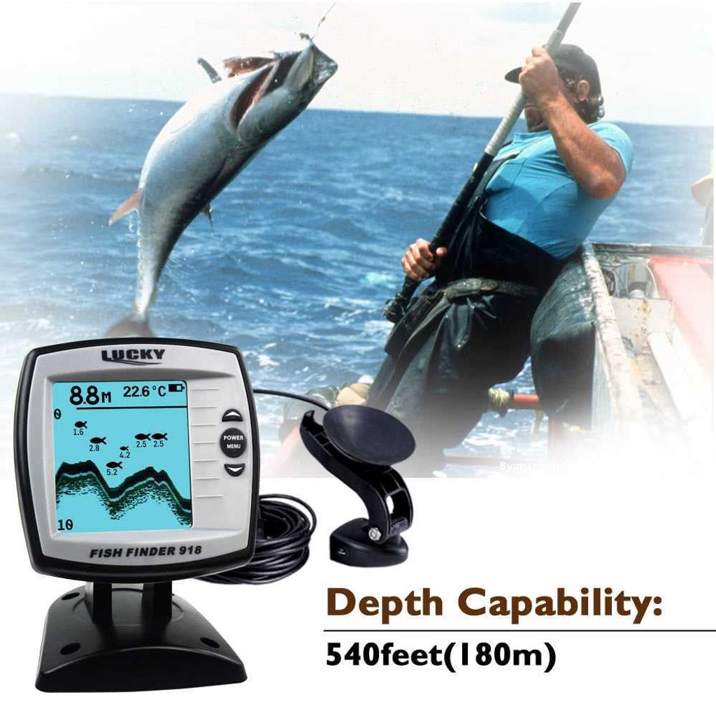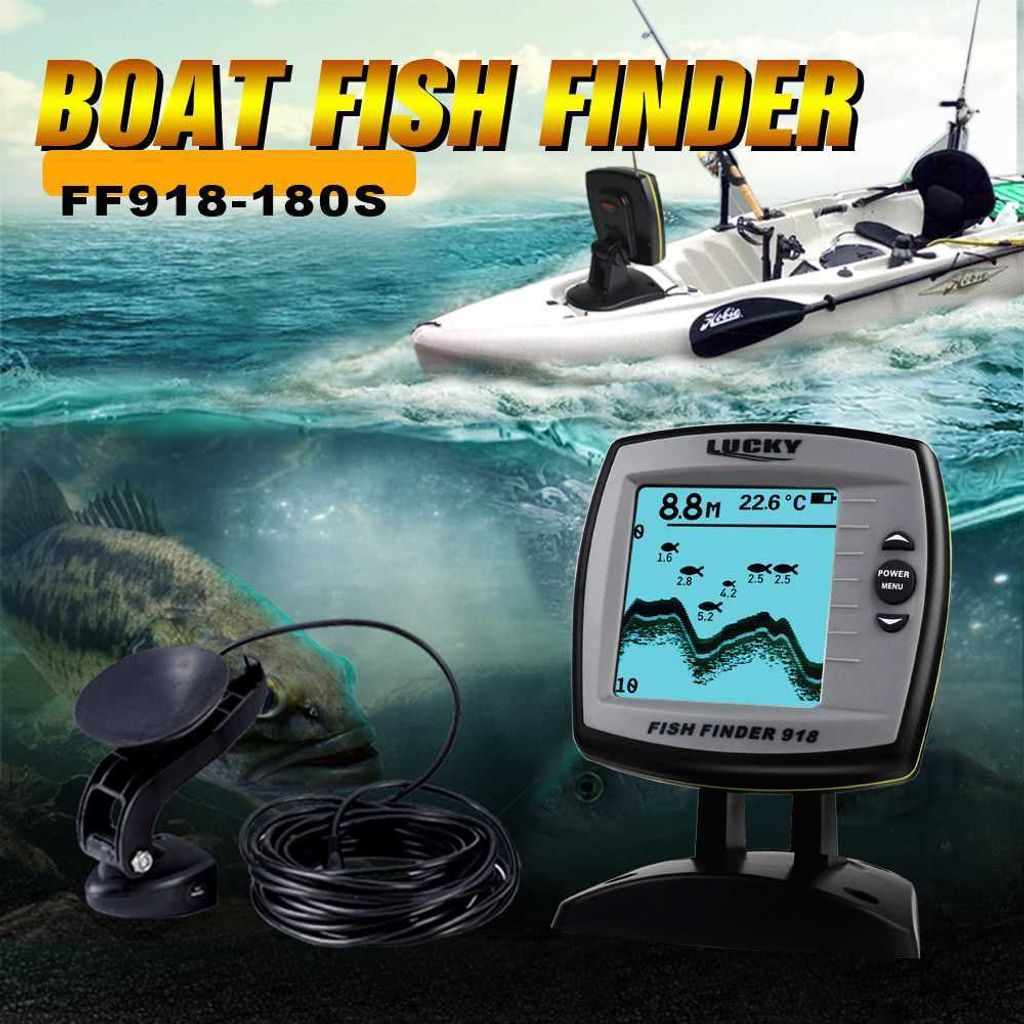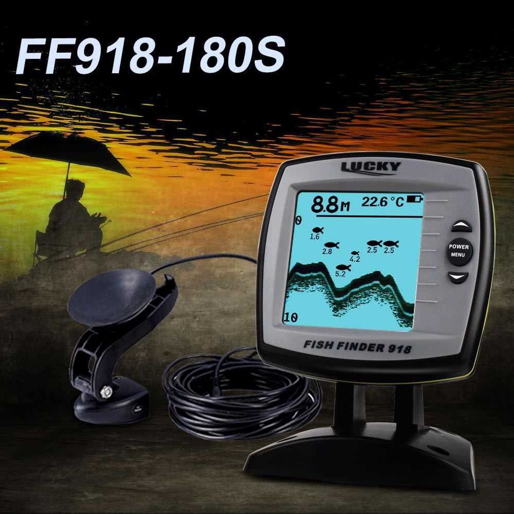 LUCKY Fish Finder FF918-180S Wired Transducer Sensor Fishfinder 45 Degrees Echo LCD Fish Locator Boat Fishfinder Fish Detector