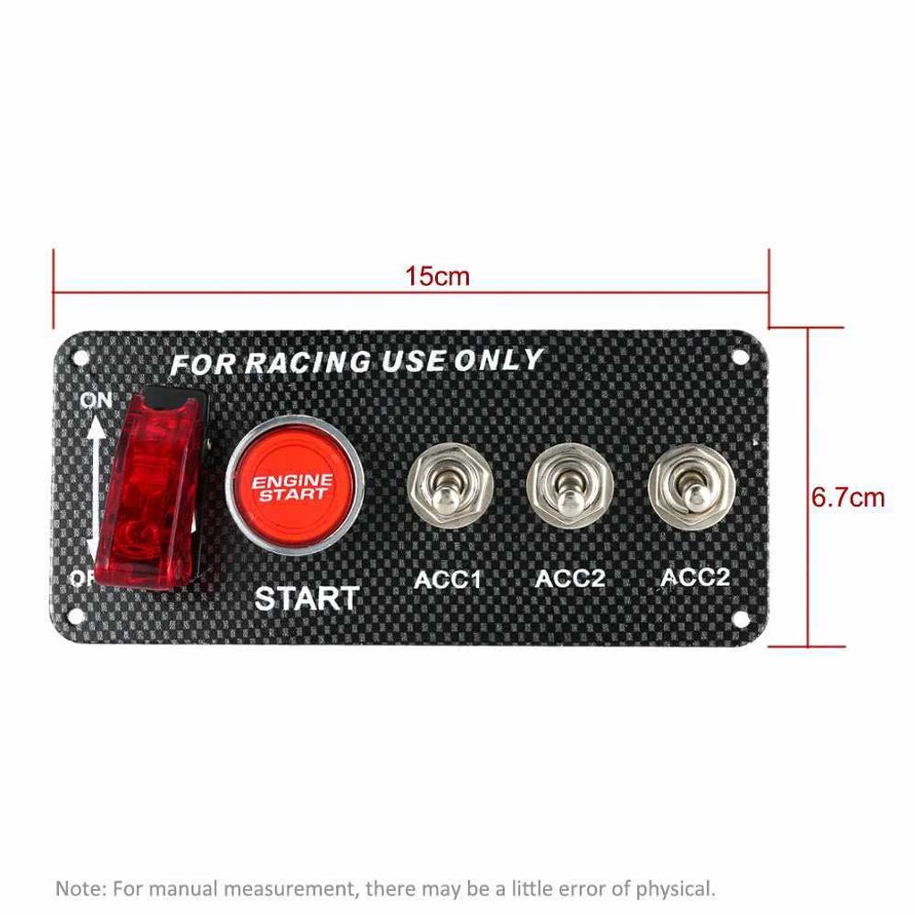 Racing Style Car 12V Ignition Switch Engine Start Push Button 3 Toggle Panel with Indicator Light DIY Car Modification Accessory