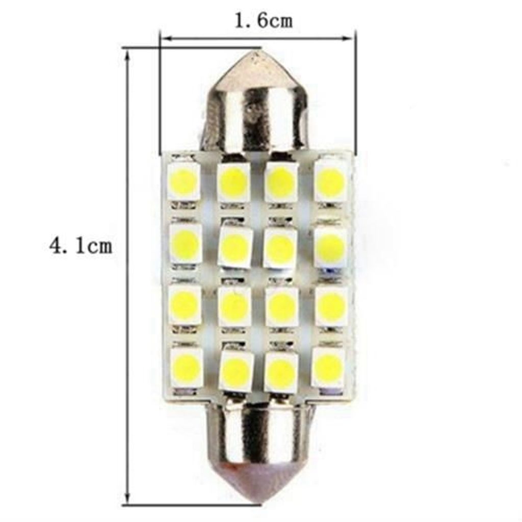 Sencart 2Pcs 16x2835SMD White Car Interior Dome DC 12V Bulb Light Lamp 41mm 1.5W