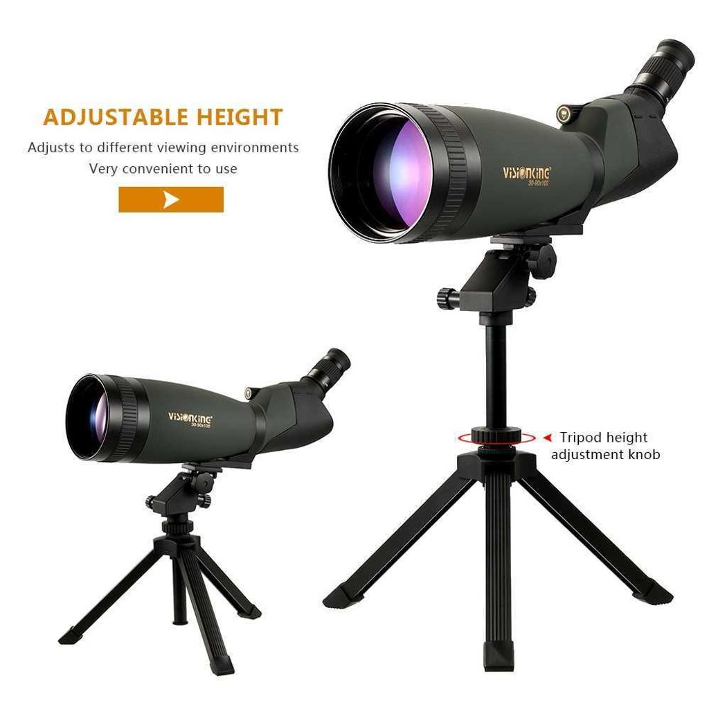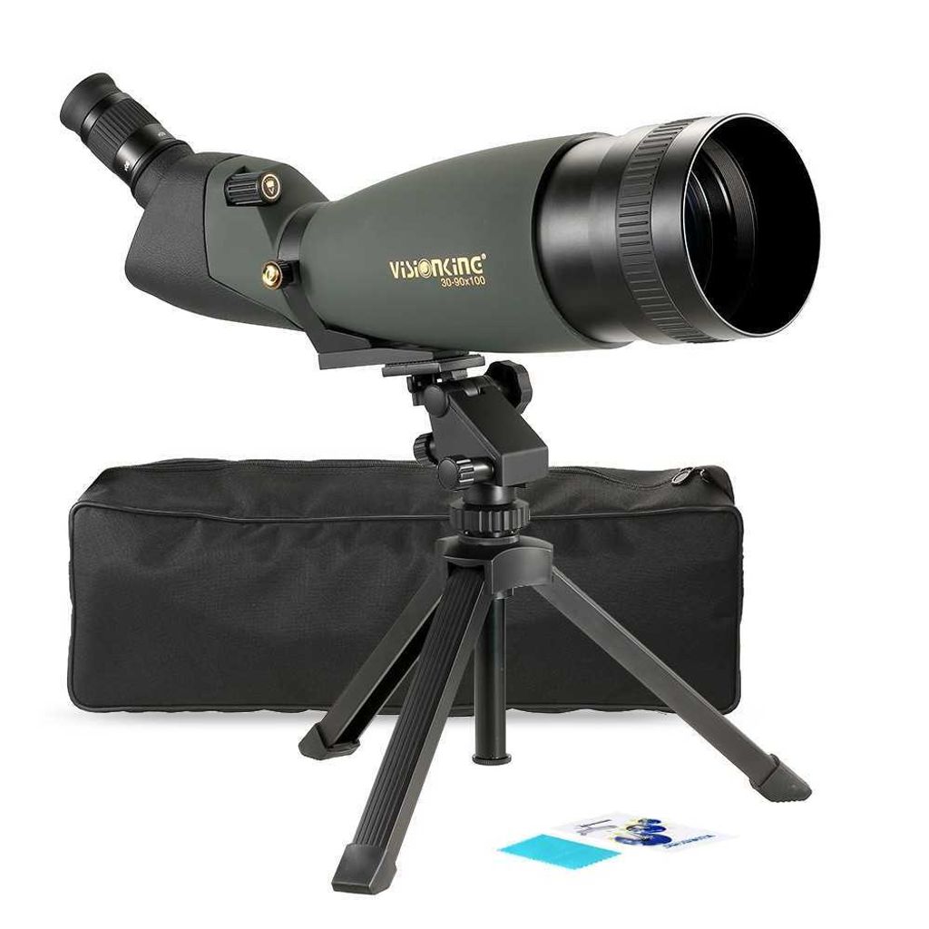 At a variable magnification from 30x - 90x and with massive 100mm multi-coated lens, this spotting scope allows a viewer in a fixed location to scan a wide field area. The tripod can offer you a stable base for convenient viewing. The carrying bag can provide this valuable scope with protection and make it convenient to carry around, perfect for traveling, hiking, camping, bird-watching, and many other outdoor activities.