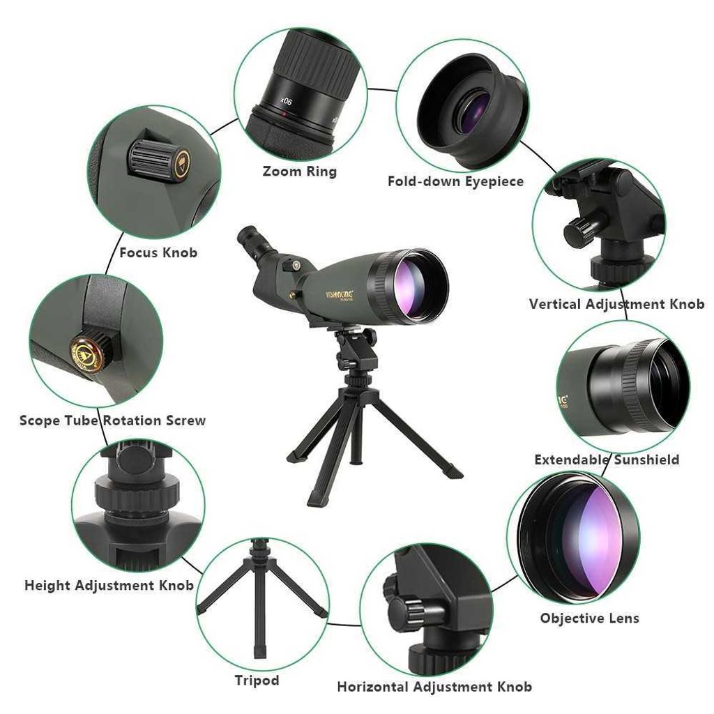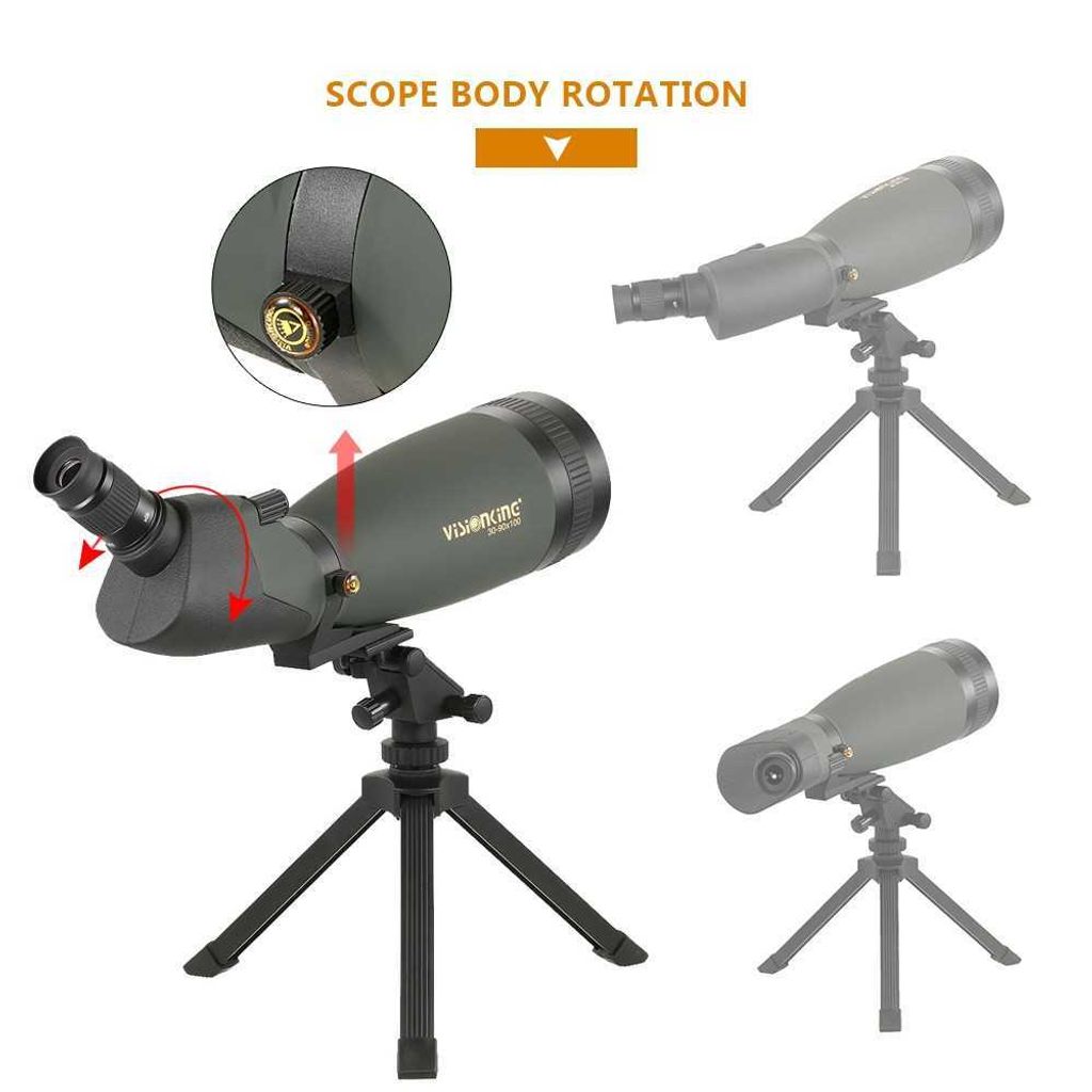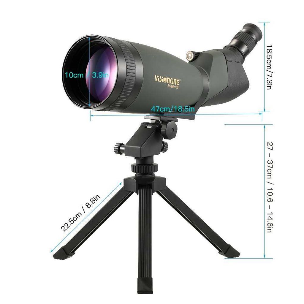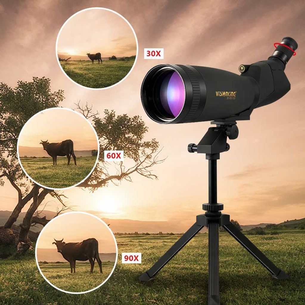 Angled spotting scope with 30x - 90x variable magnification, see beautiful things 30x - 90xcloser and clearer through massive 100mm objective lens.