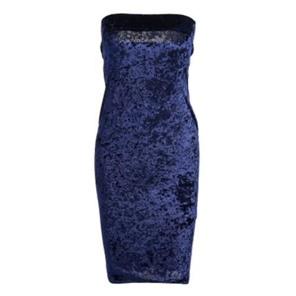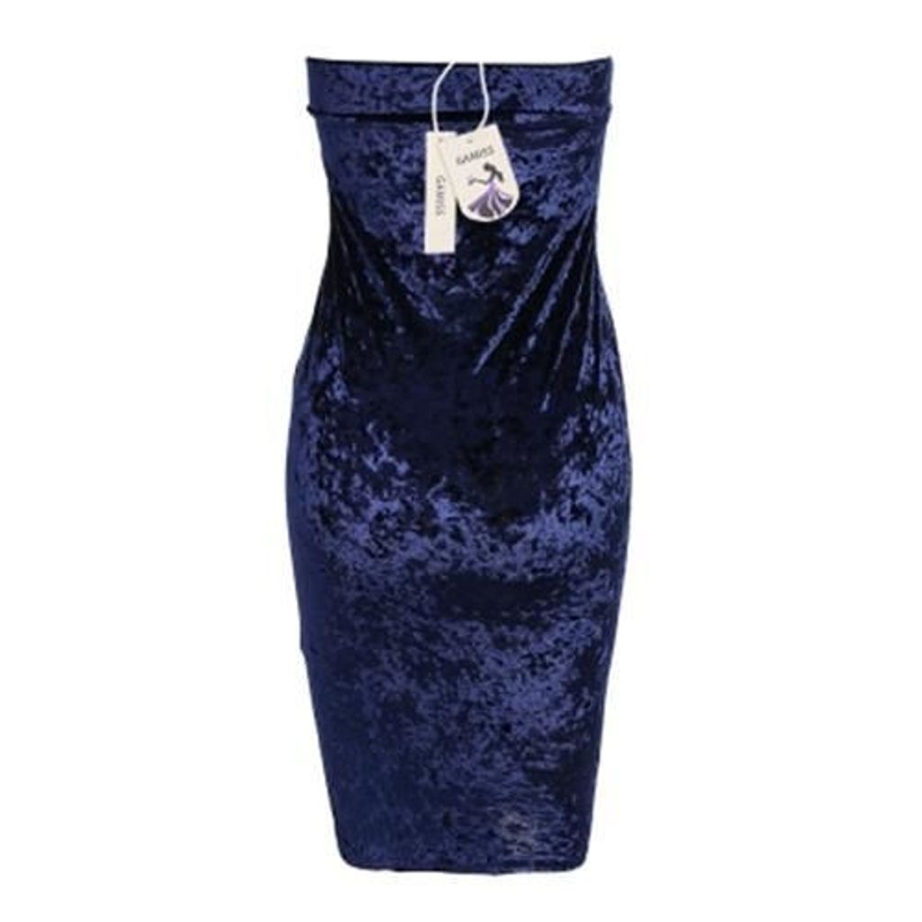 BRIEF SLEEVELESS STRAPLESS VELVET WOMEN DRESS (PURPLISH BLUE)