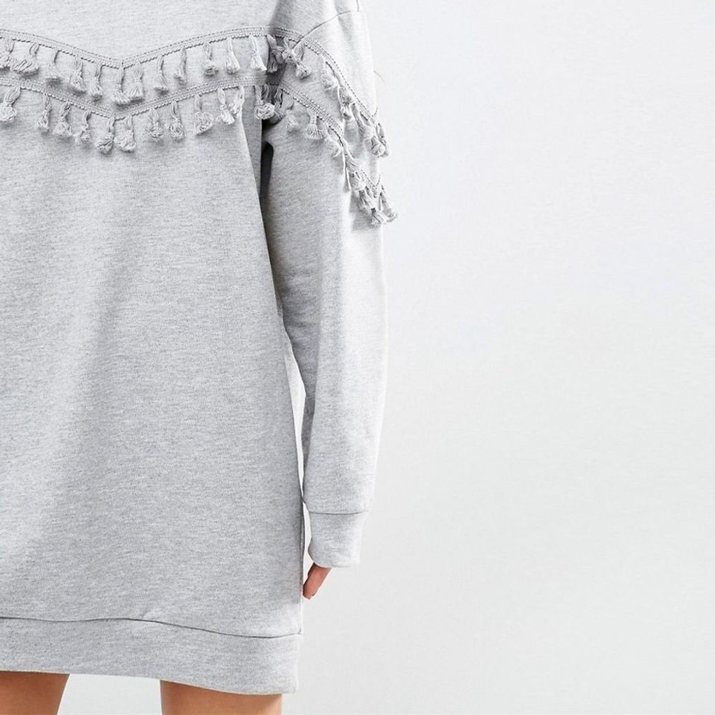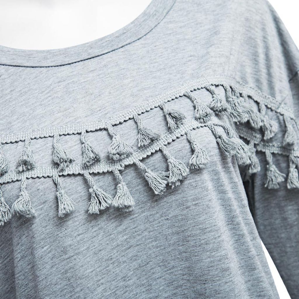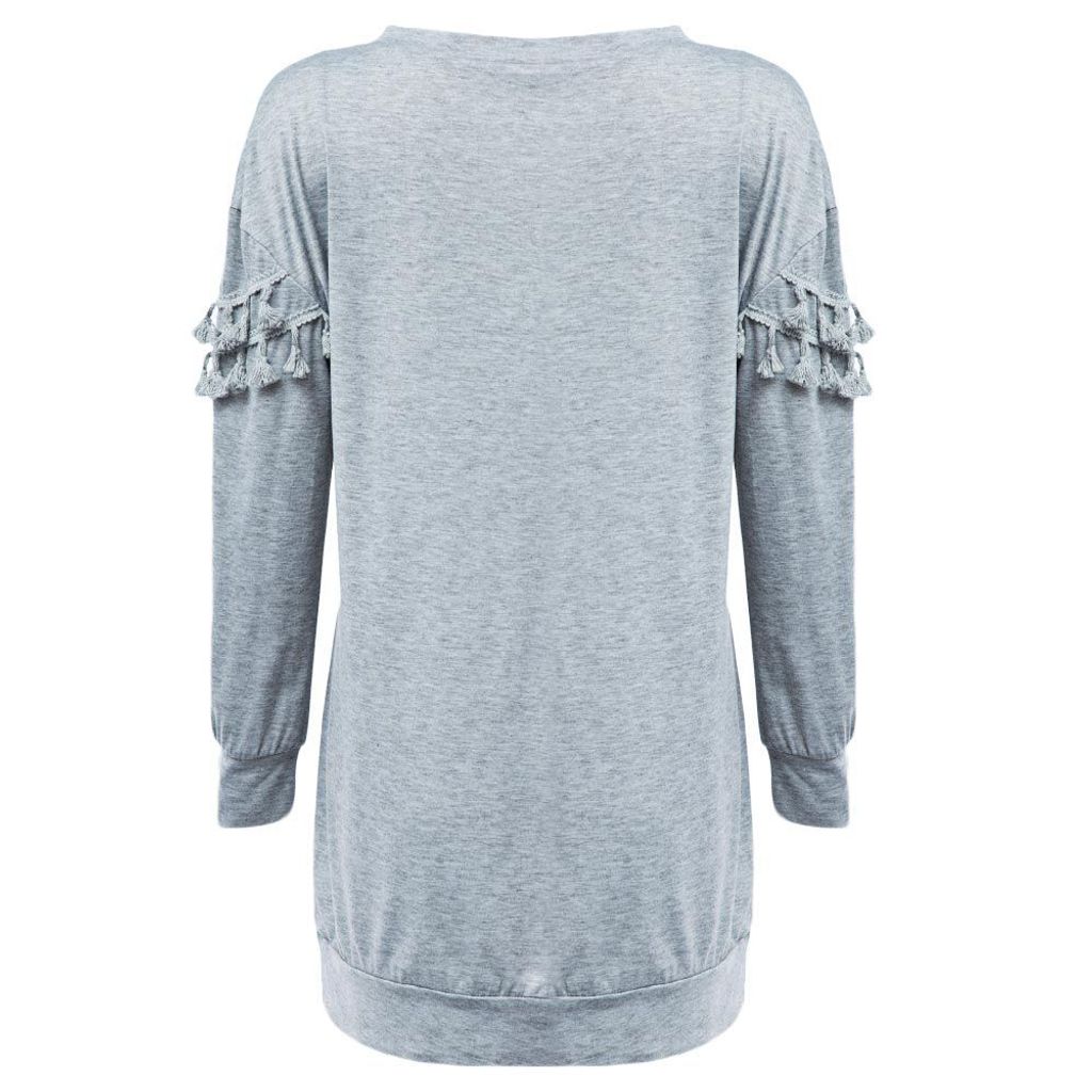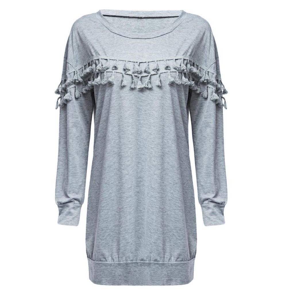 CASUAL ROUND COLLAR TASSEL LOOSE MINI DRESS FOR WOMEN (GRAY, SIZE S/M/L/XL)
