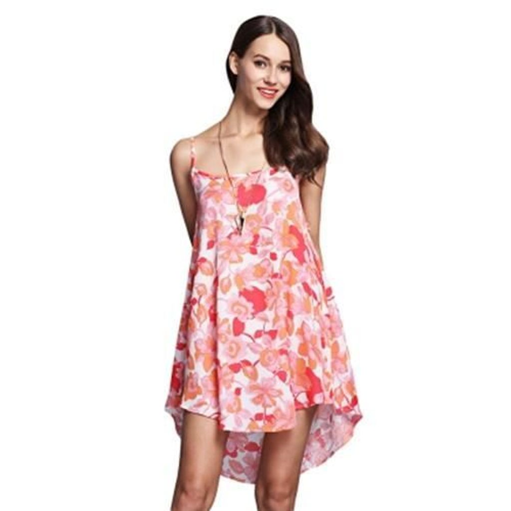 Casual Spaghetti Strap Floral Print High-low Hem Women Dress