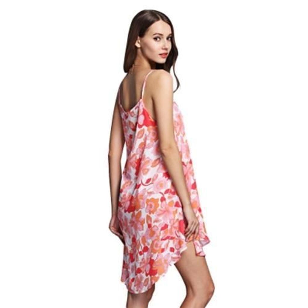 The highlights of this spaghetti strap dress are the high-low hem and floral print. Red flowers on an eye-catching printed chiffon dress, fair lady breath is full-bodied. Women who wear this active and colorful dress are as beautiful as flowers in summer.