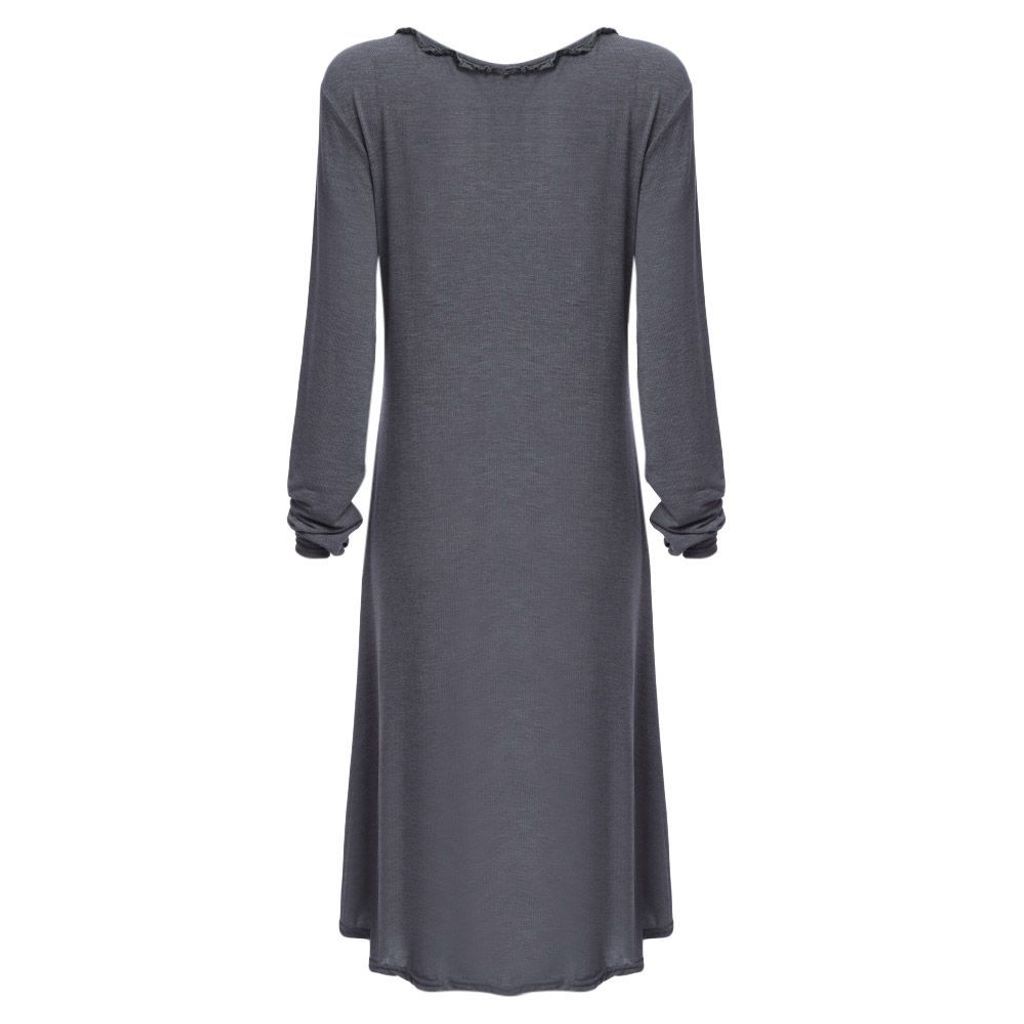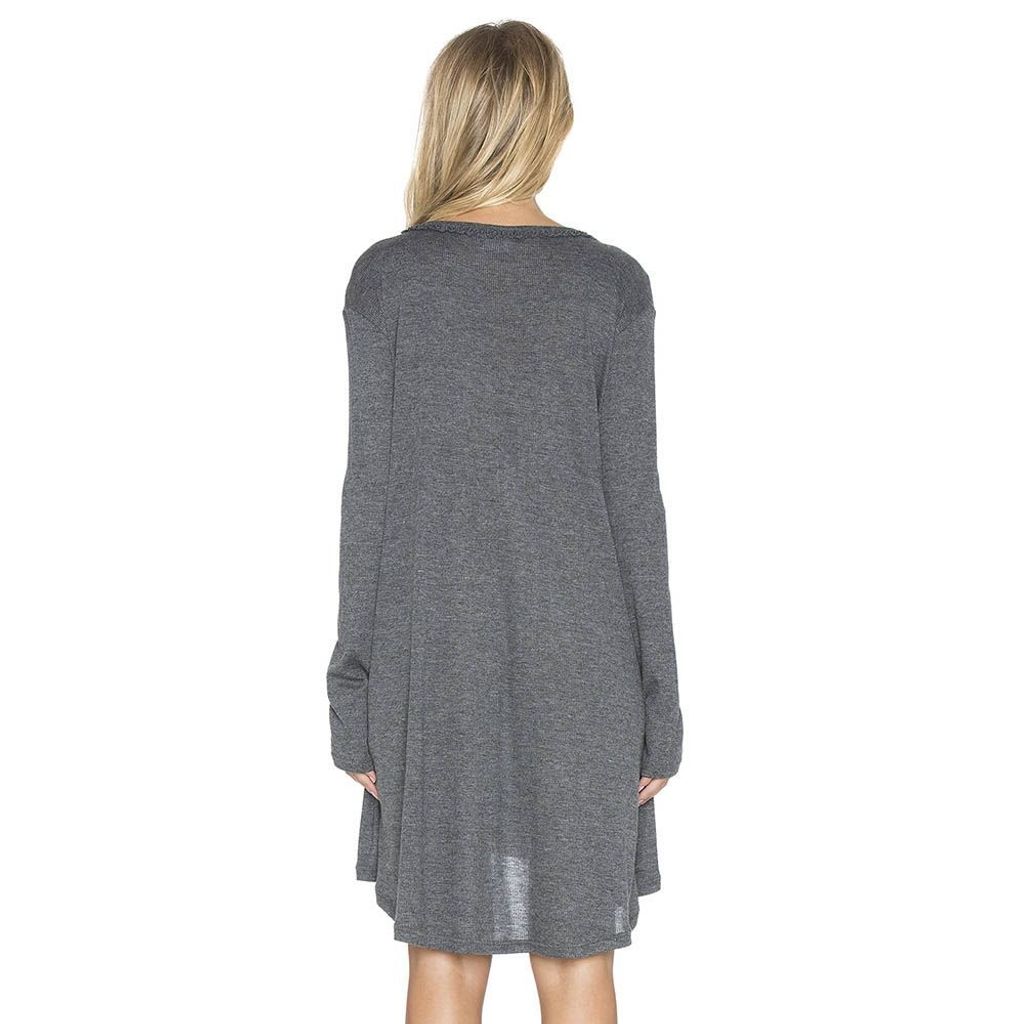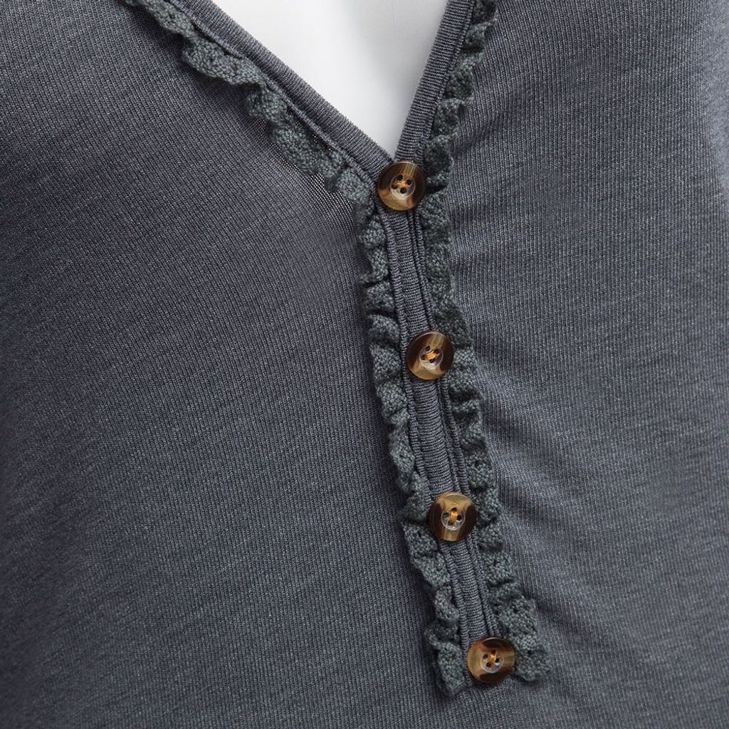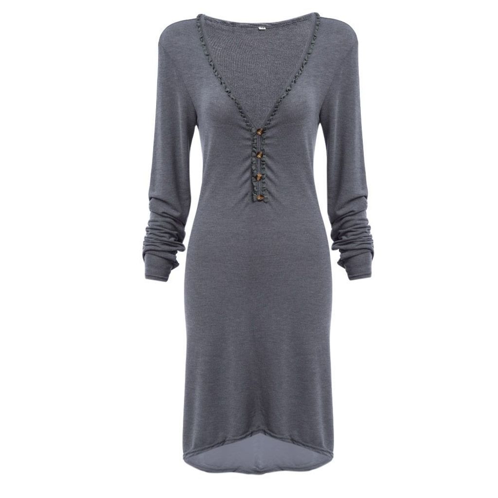 CASUAL V-NECK BUTTON DESIGN ASYMMETRICAL LOOSE DRESS FOR WOMEN (GRAY, SIZE S/M/L/XL)