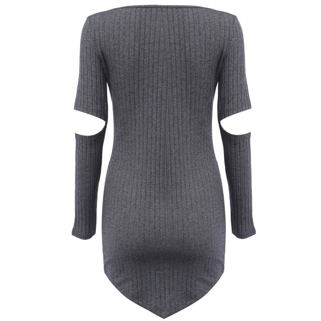 CHARMING ROUND COLLAR PURE COLOR HOLE DESIGN KNITTED BODYCON (GRAY S/M/L)