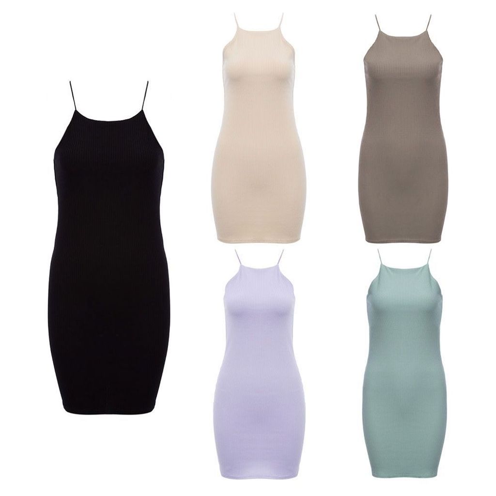 CharmingSpaghetti Strap Bodycon Knit Mini Dress for Women