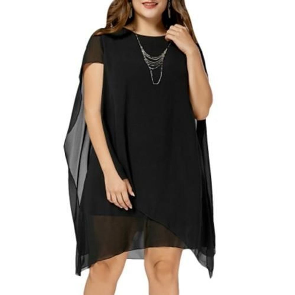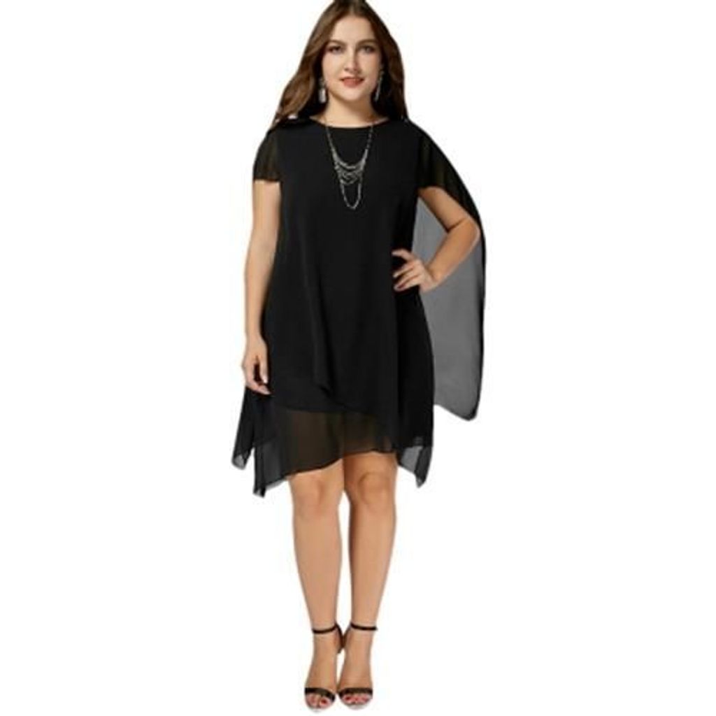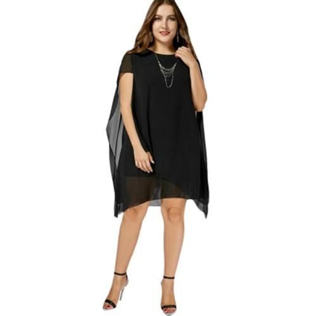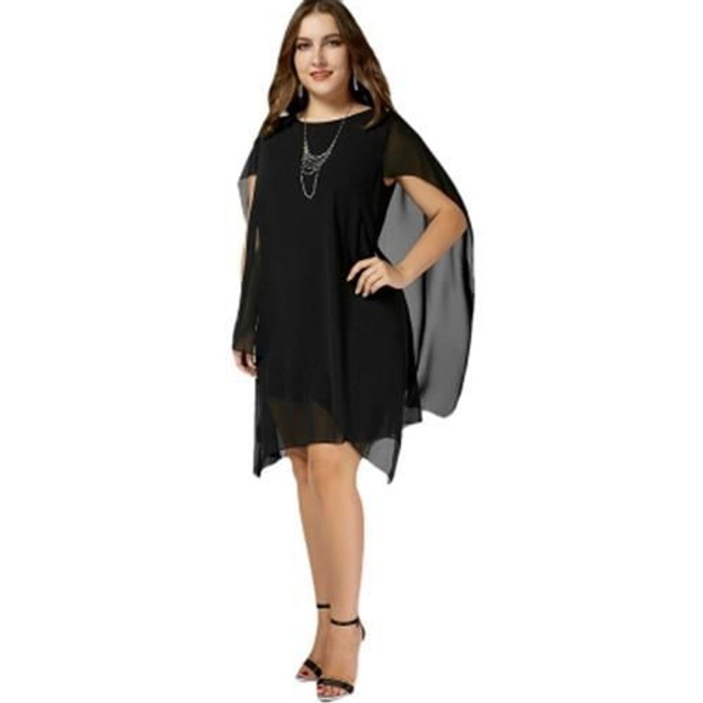 CHIFFON ASYMMETRIC PLUS SIZE CAPE DRESS (BLACK)