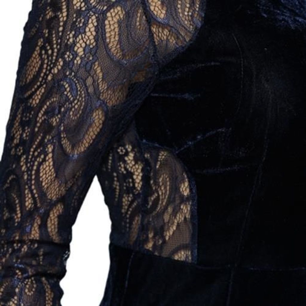 ELEGANT ROUND COLLAR LACE SPLICED SHEATH VELVET DRESS FOR WOMEN (DEEP BLUE)
