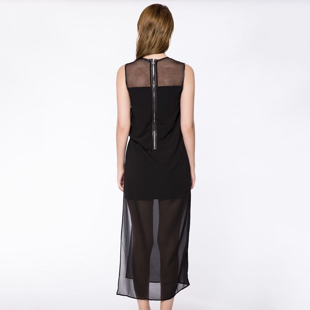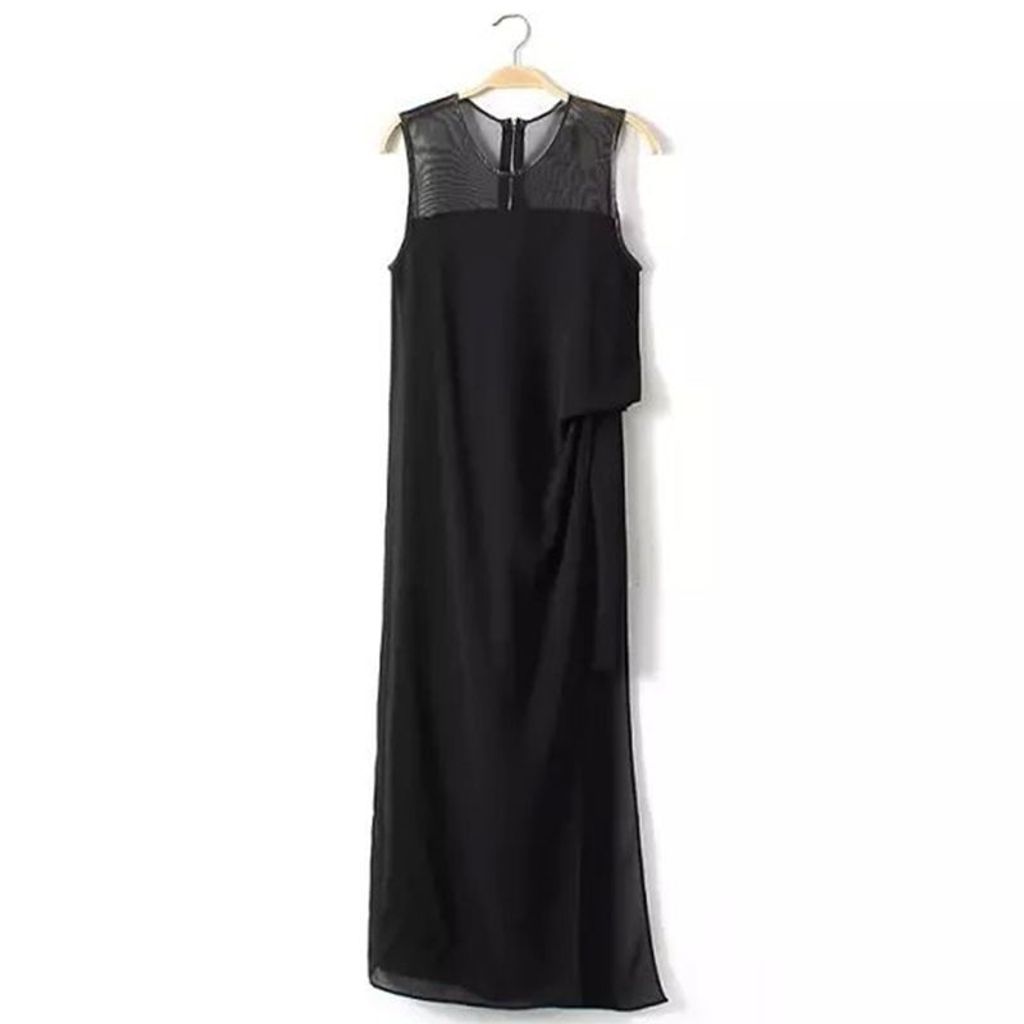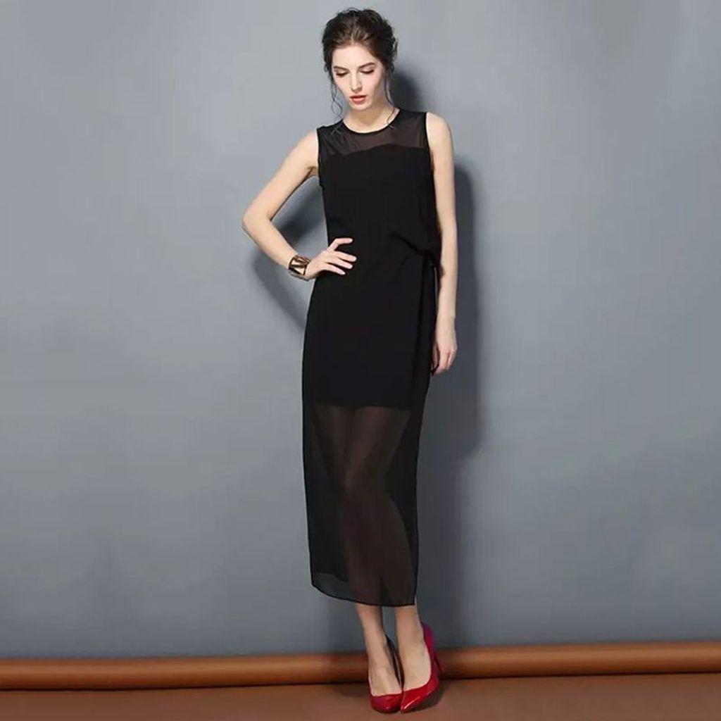 ELEGANT ROUND COLLAR SLEEVELESS SPLICED FAUX TWO PIECE PURE COLOR WOMEN'S SPLIT DRESS
