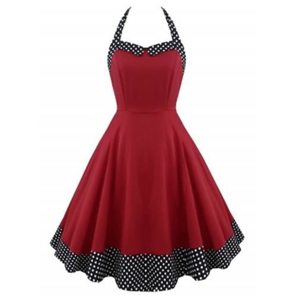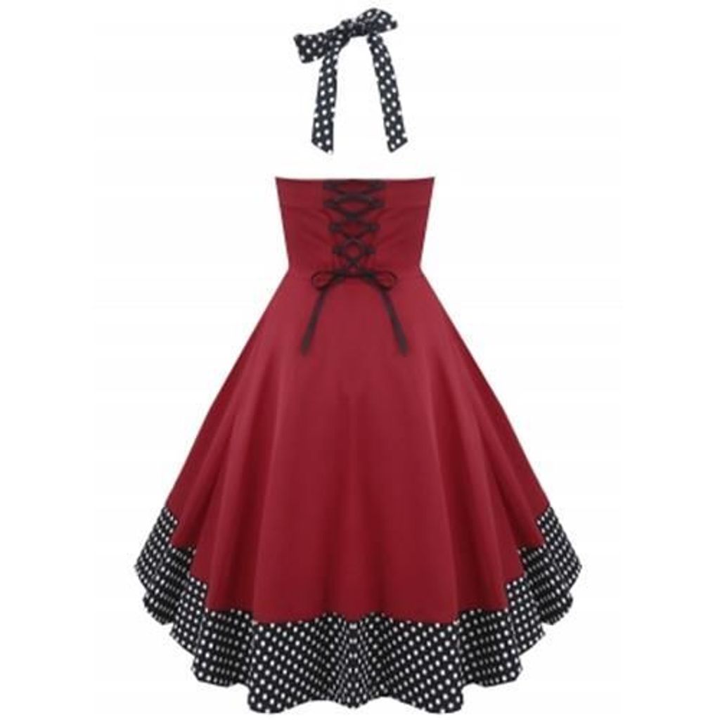 HALTER LACE UP POLKA DOT VINTAGE DRESS (RED)