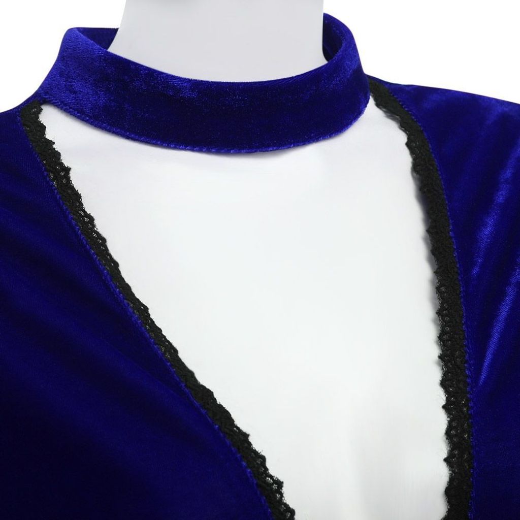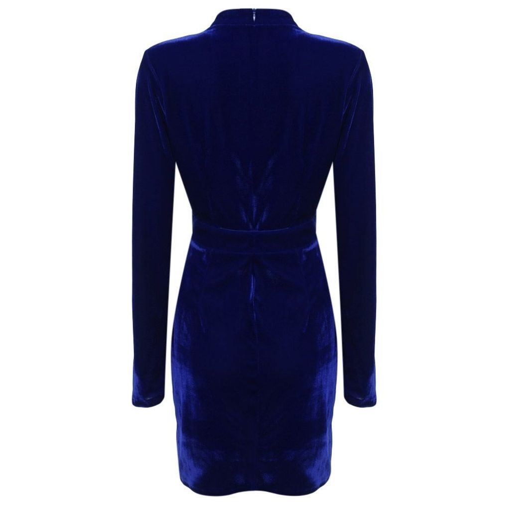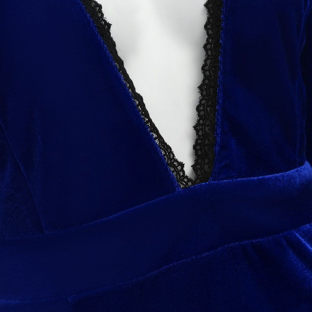 HALTER PLUNGING NECK SHEATH VELVET DRESS FOR WOMEN (BLUE, SIZE S/M/L/XL)