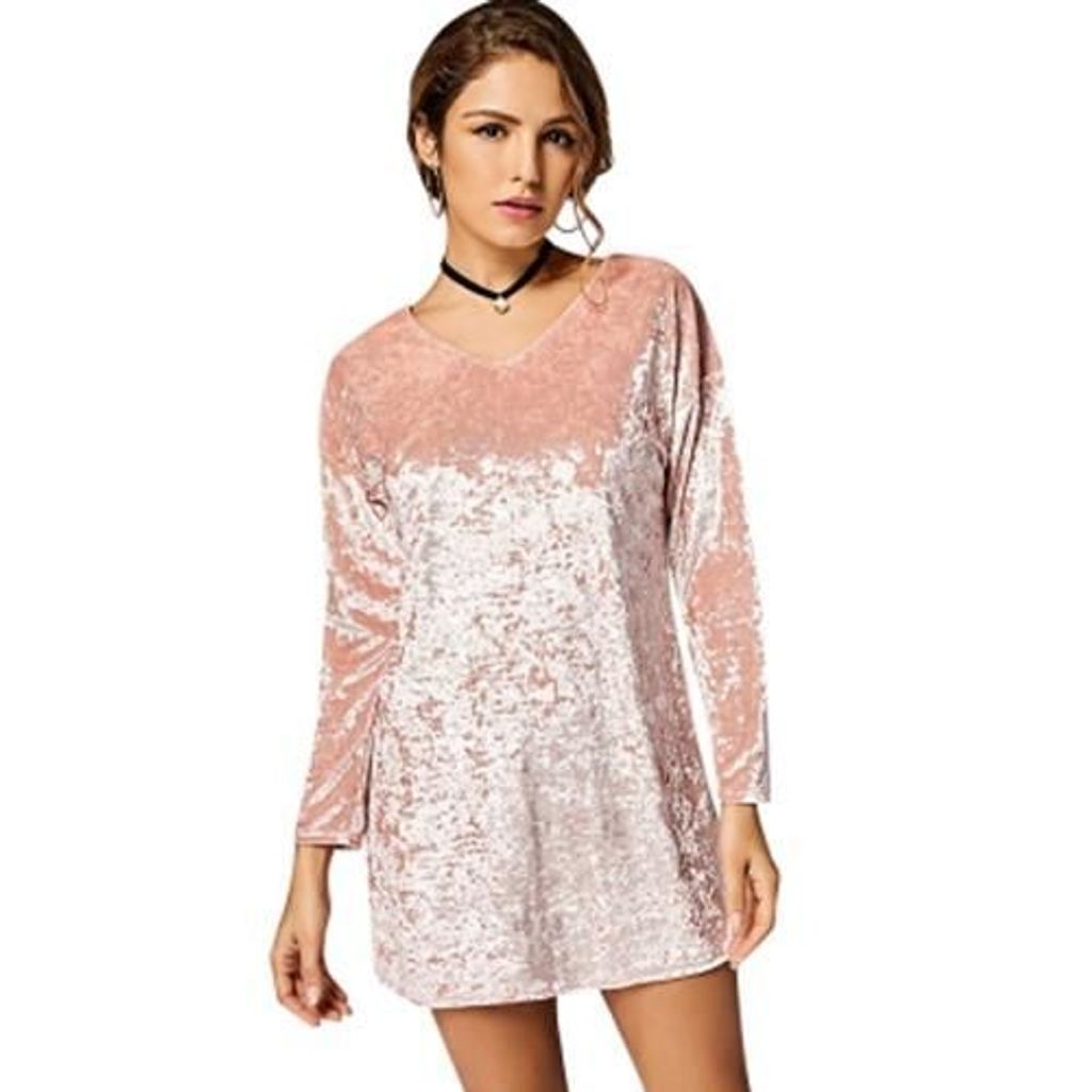 LONG SLEEVE MINI VELVET SHIFT DRESS (PINK)