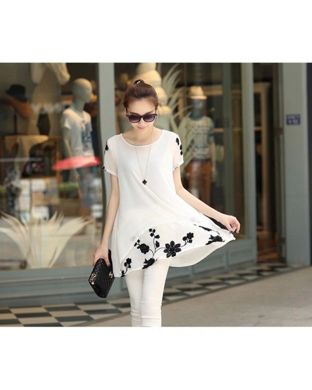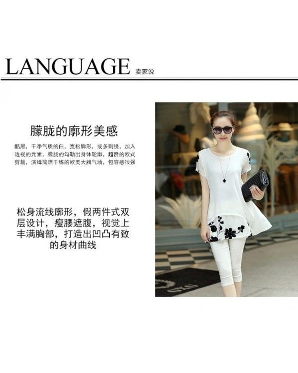 Plus Size Stylish Loose Waist White Short Sleeve Tunics Top JA0001WTP (White XL / 2XL / 3XL / 4XL)