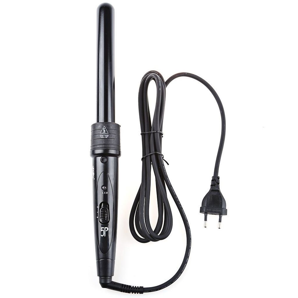 5pcs interchangeable curling iron offers 5 different ceramic barrels of different shape and sizes: 9-18mm, 19mm, 19-25mm, 25mm and 32mm.
