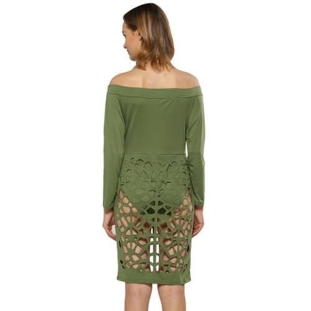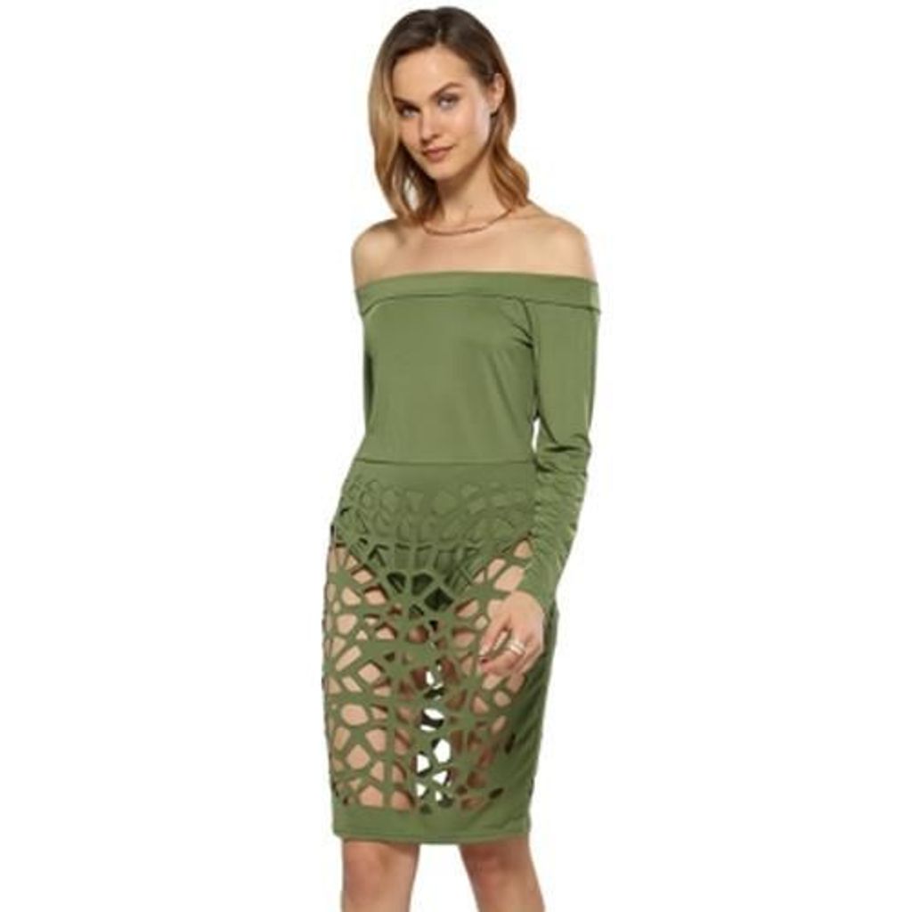 SEXY OFF THE SHOULDER HOLLOW OUT SHEATH DRESS FOR WOMEN (ARMY GREEN)