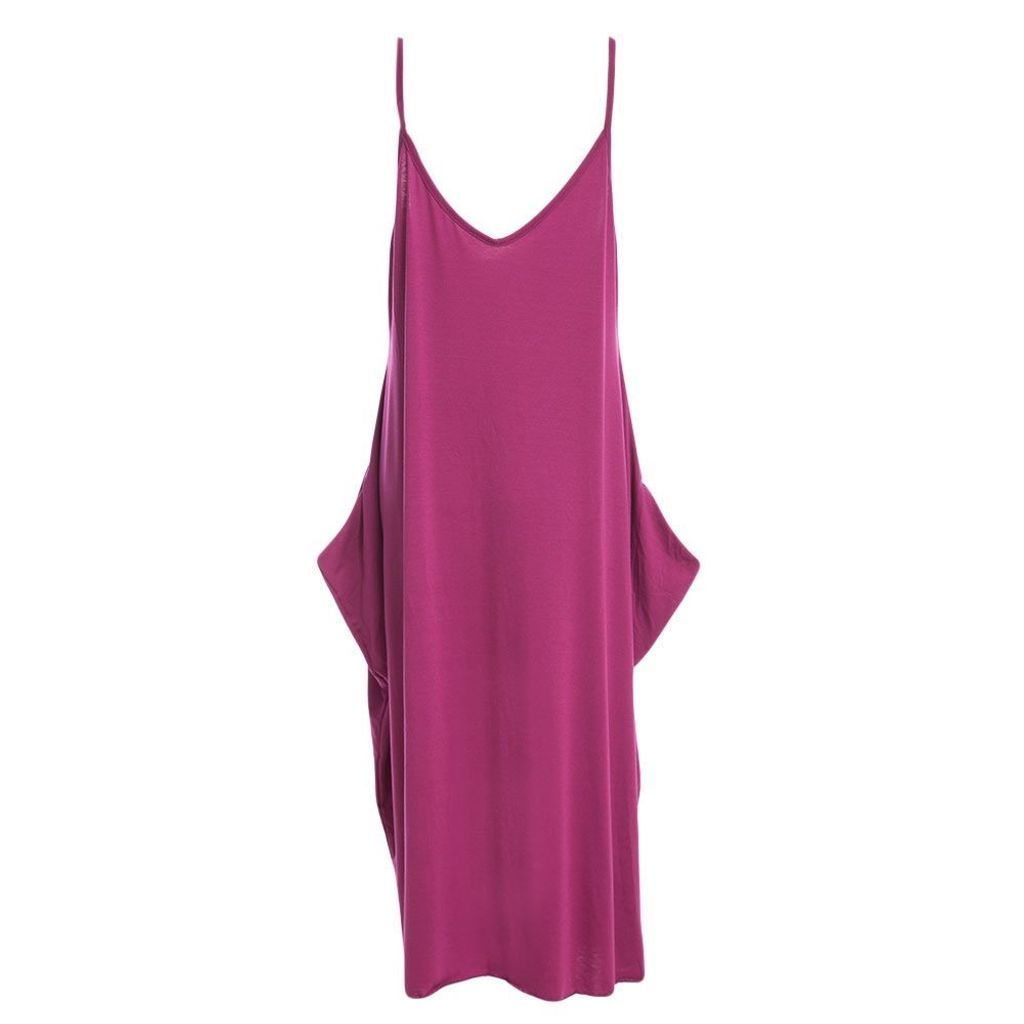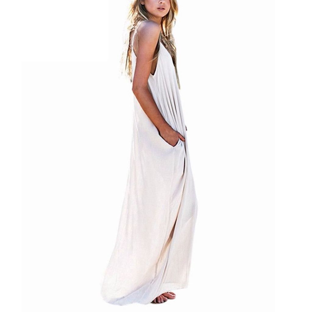 SEXY PLUNGING NECK SUSPENDER LOOSE WITH POCKET SOLID COLOR MAXI DRESS FOR WOMEN