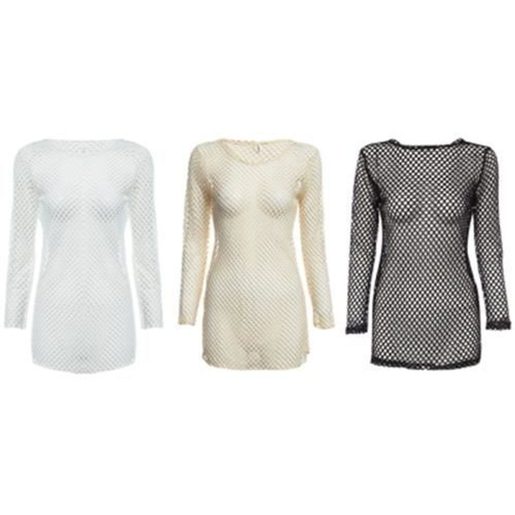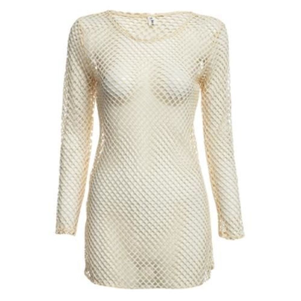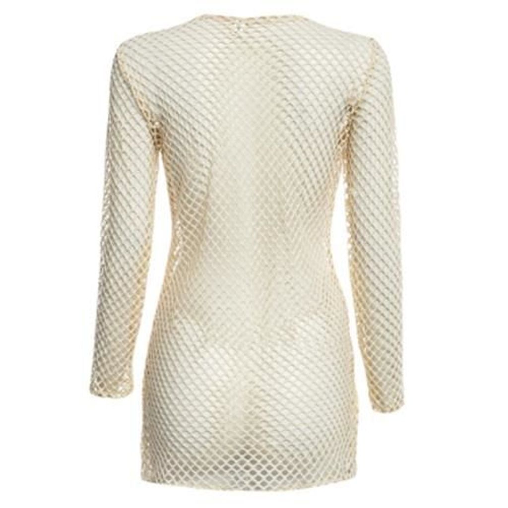 SEXY ROUND COLLAR HOLLOW OUT SEE-THROUGH LONG SLEEVE SOLID COLOR WOMEN BLOUSE (KHAKI)