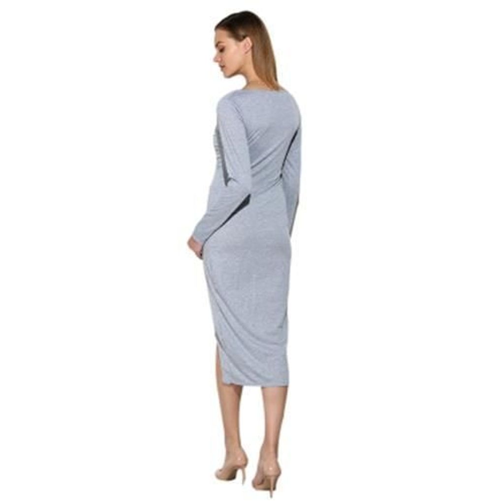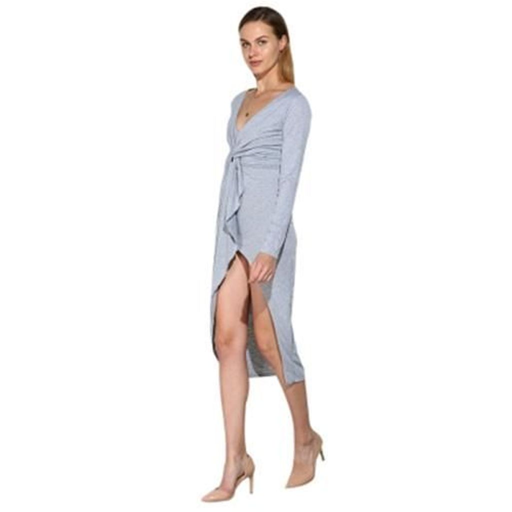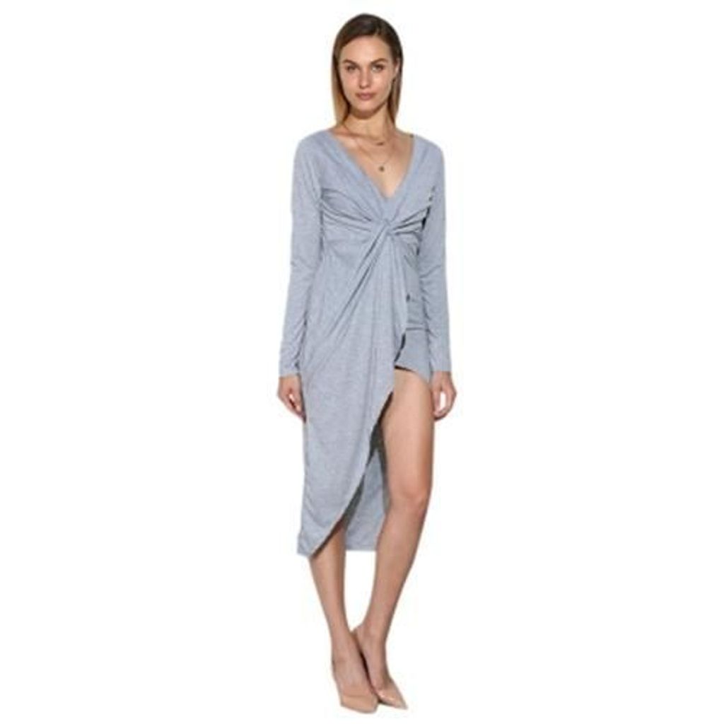 SEXY V-NECK DRAPED ASYMMETRICAL BODYCON DRESS FOR WOMEN (GRAY)