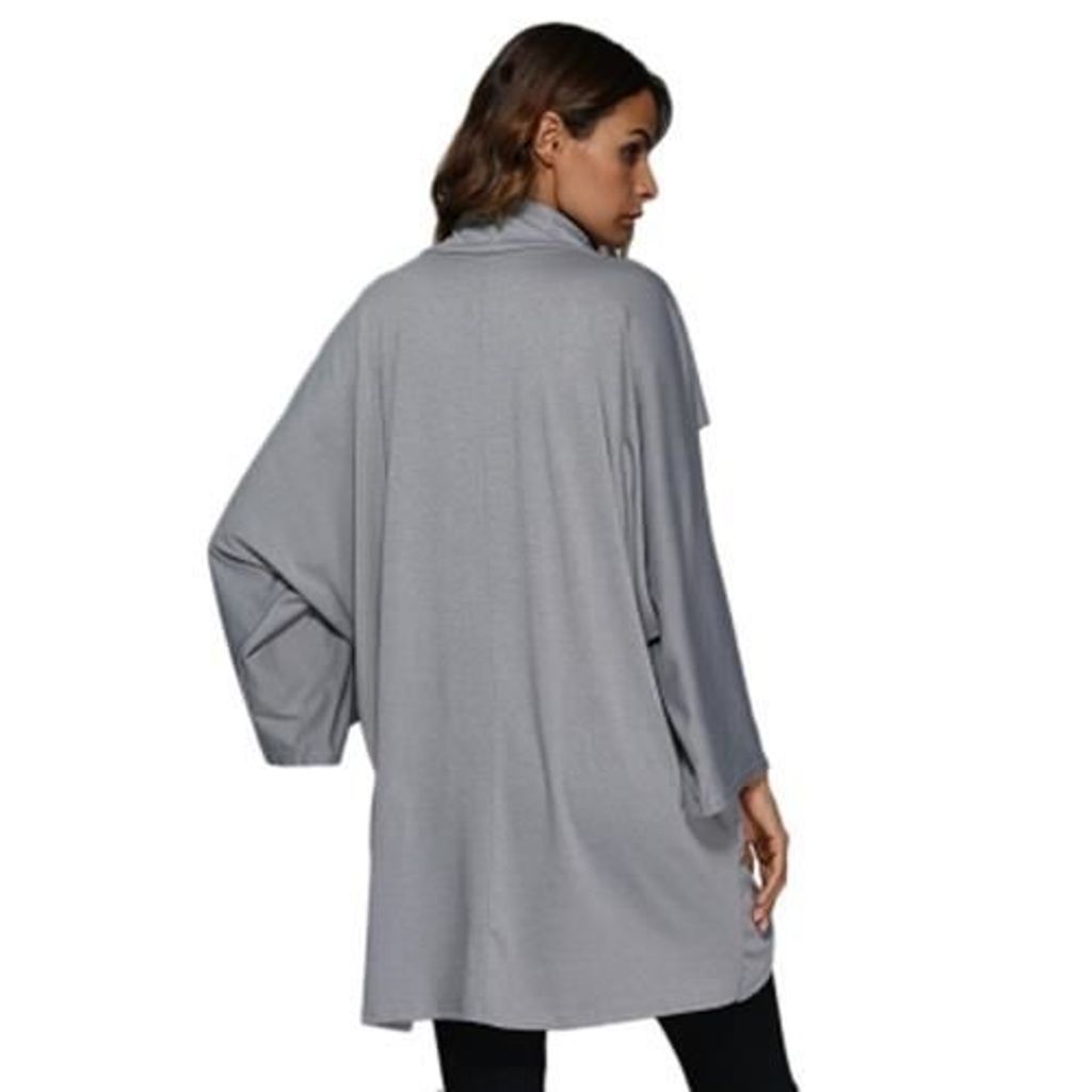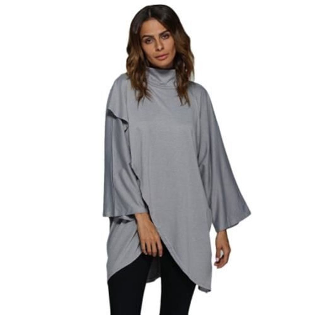 SIMPLE TURTLENECK FLARE SLEEVE PURE COLOR LOOSE BLOUSE FOR WOMEN (GRAY)