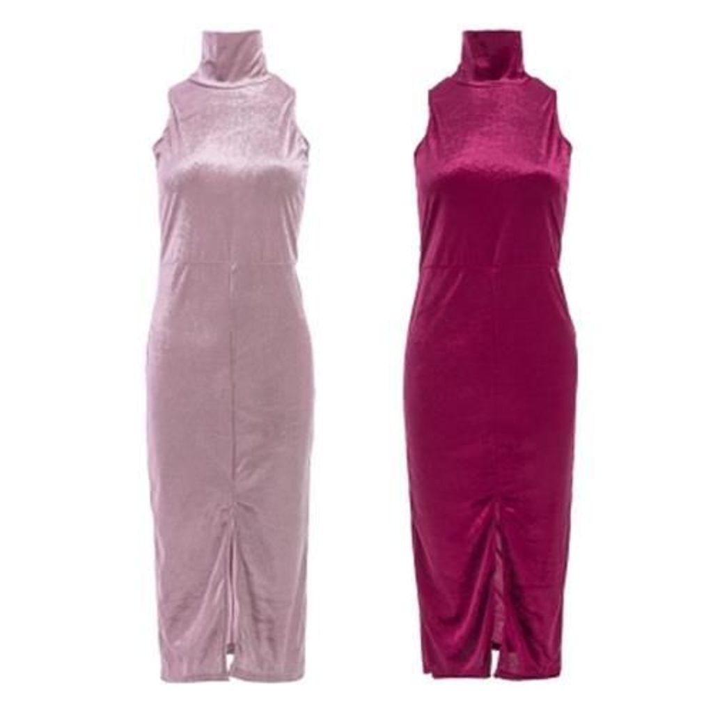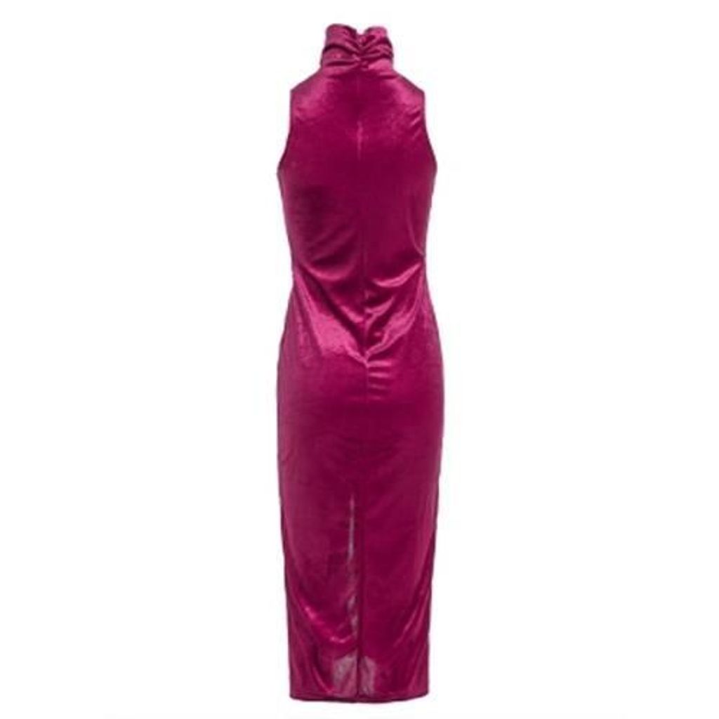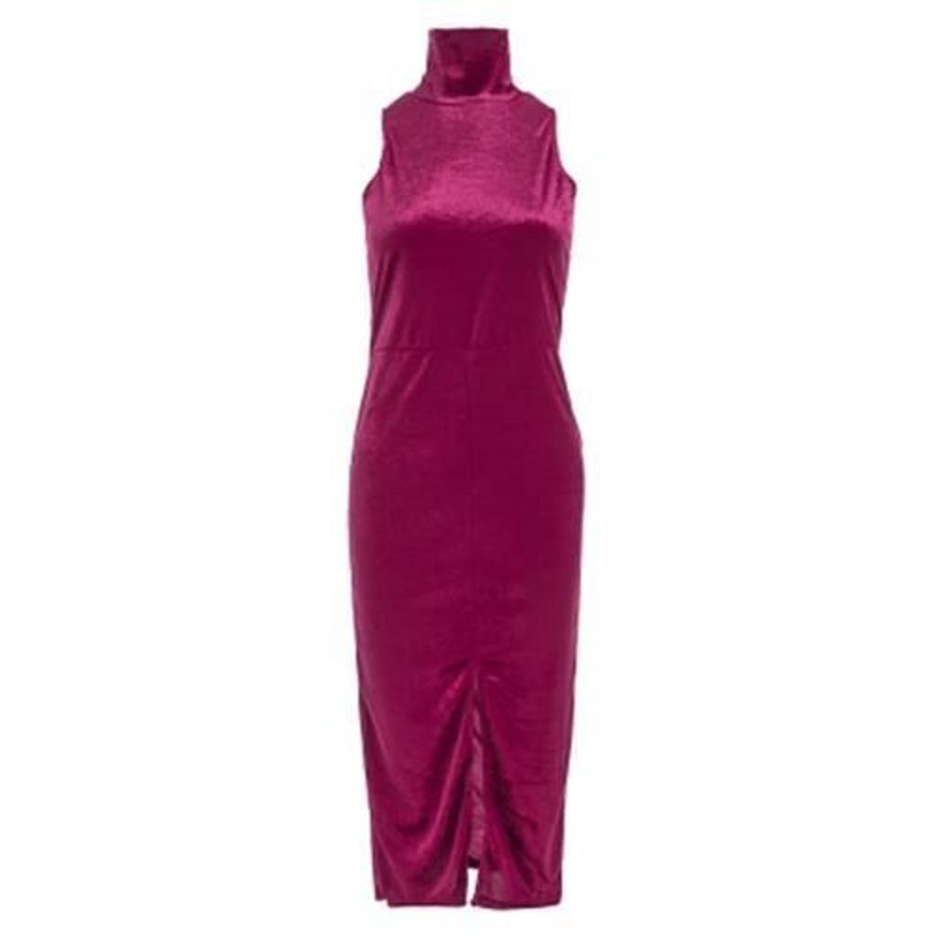 TRENDY SLEEVELESS STAND COLLAR SLIT WOMEN BODYCON DRESS (CLARET)