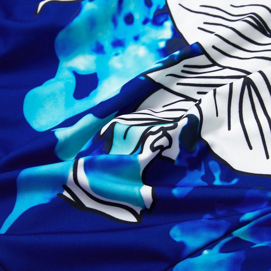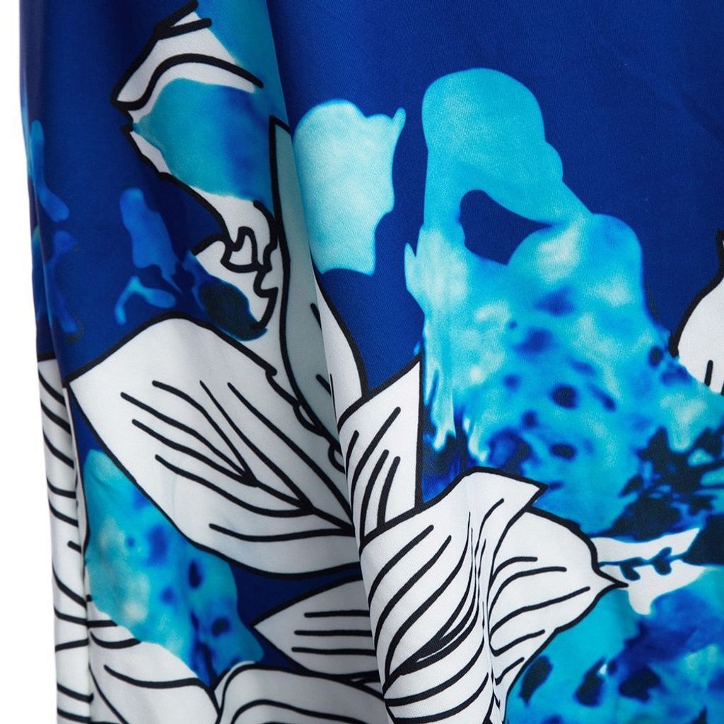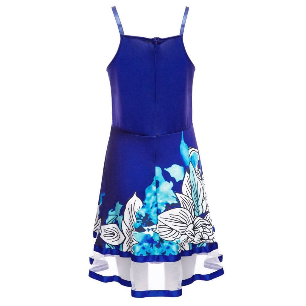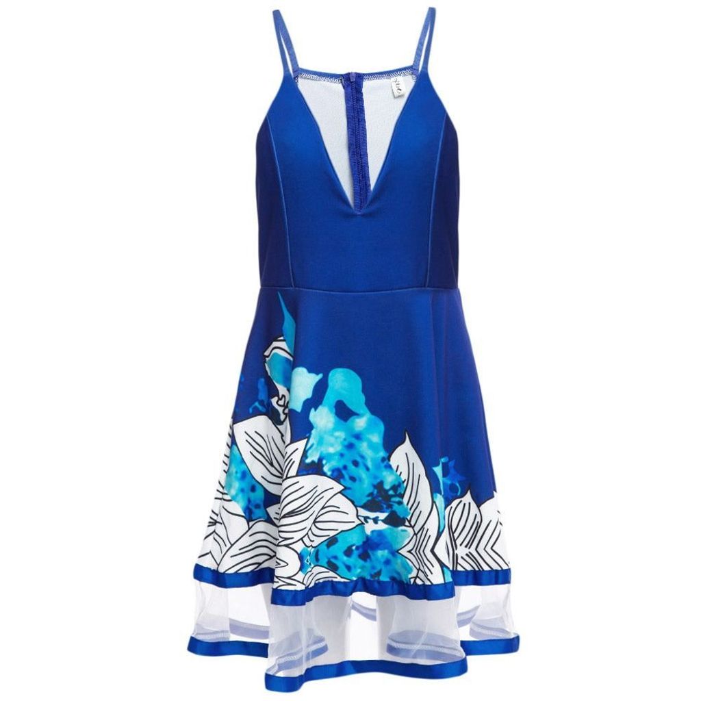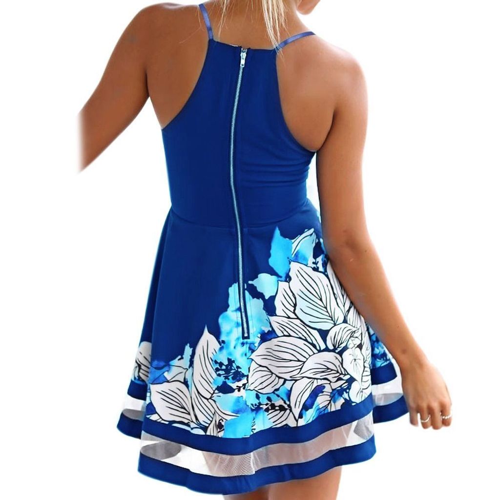 WOMEN'S SPAGHETTI STRAP PADDED ZIPPER FLORAL PRINT ORGANZA PATCHWORK A-LINE MINI SUMMER DRESS (PURPLISH BLUE, SIZE S/M/L/XL)