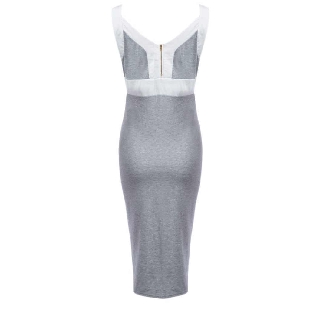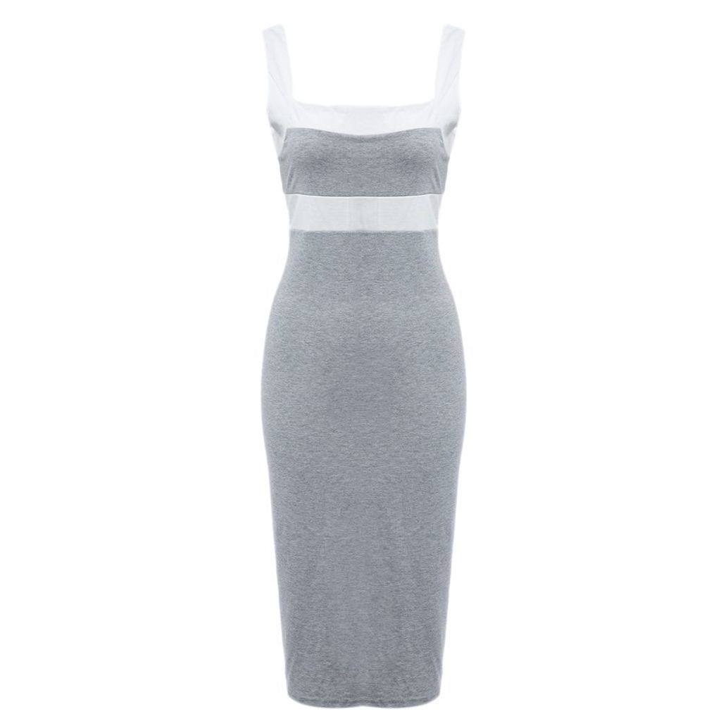 WOMEN'S SPAGHETTI STRAP PATCHWORK BODYCON SLIT DRESS (GRAY, SIZE S/M/L/XL)