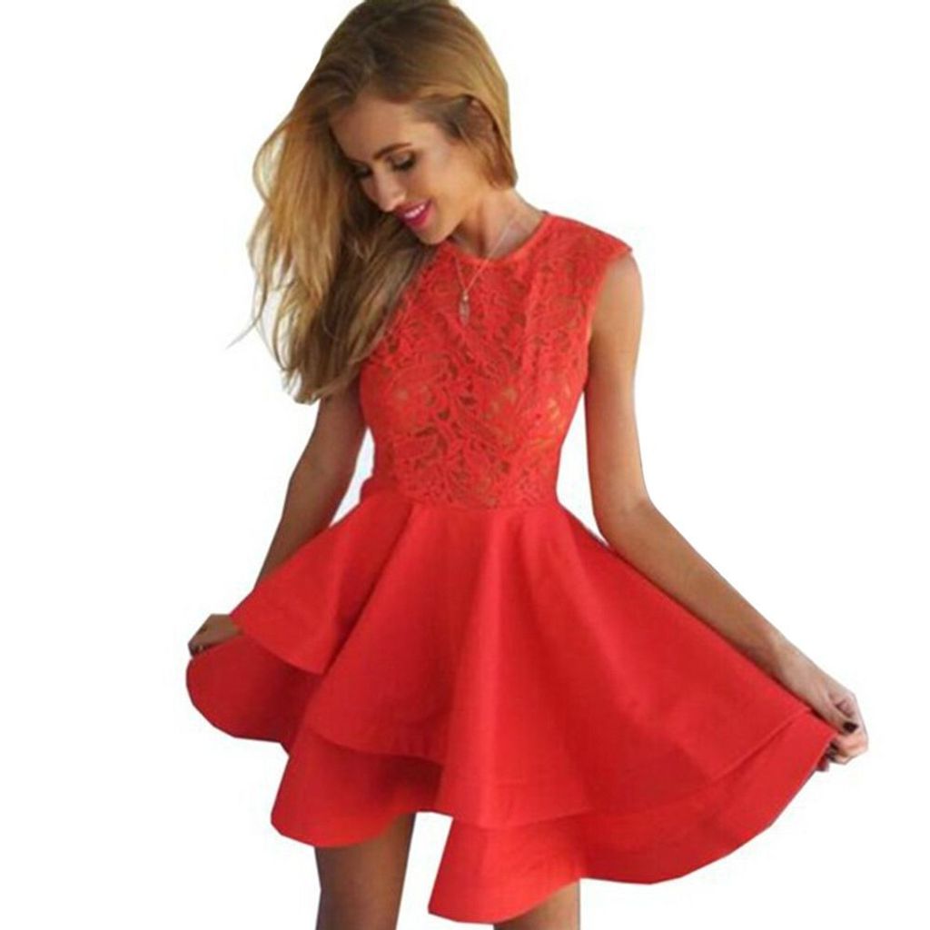 WOMEN'S STYLISH EMBROIDERY LAYERED MINI DINNER DRESS (RED, SIZE S/M/L)