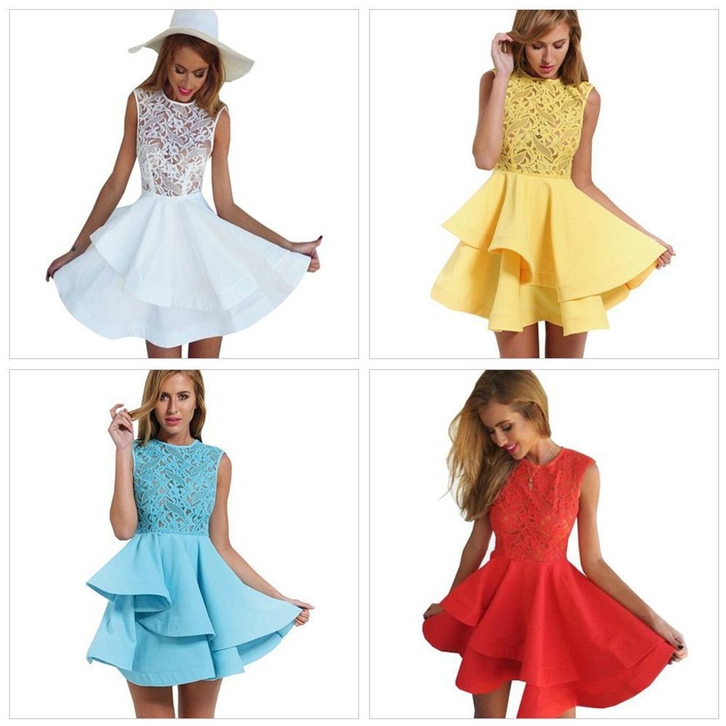 Chic Round Collar Embroidery Layered Mini Ball Gown Dress for Women