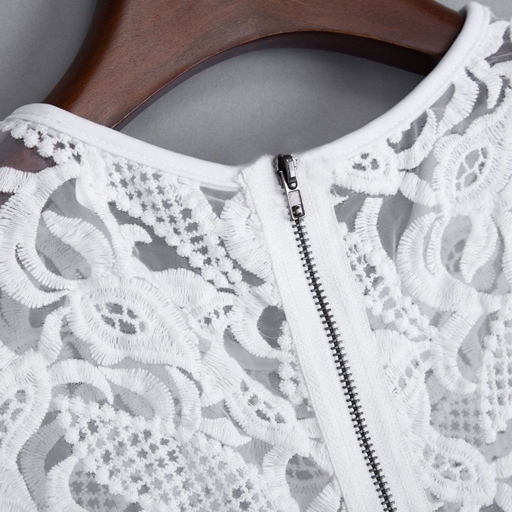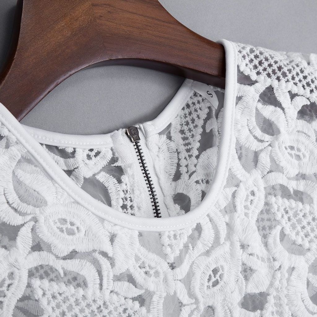 WOMEN'S STYLISH EMBROIDERY LAYERED MINI DINNER DRESS (WHITE, SIZE S/M/L)