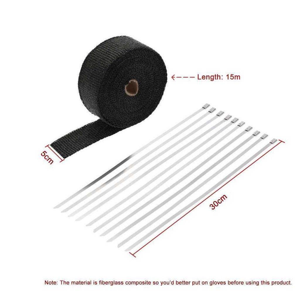 15m Exhaust Heat Wrap Turbo Pipe Heat Insulated Wrap 10 30cm Cable Ties for Car Motorcycle