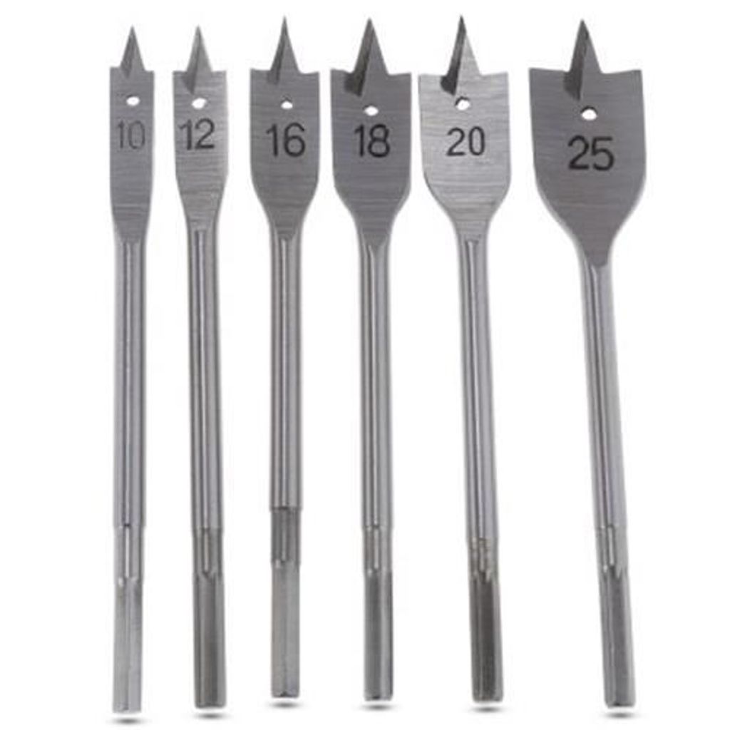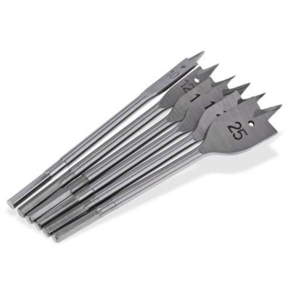 6PCS 10 - 25MM WOOD FLAT DRILL BITS FLAT SPADE HEX SHANK WOODWORKING HOLE CUTTERS TOOLS (SILVER)