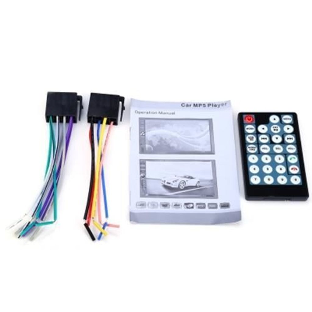 Package Contents: 1 x 7012B 7 Inch Bluetooth V2.0 Car Stereo Touch Screen MP5 Player, 1 x Remote Control, 2 x Power Cable, 1 x English User Manual