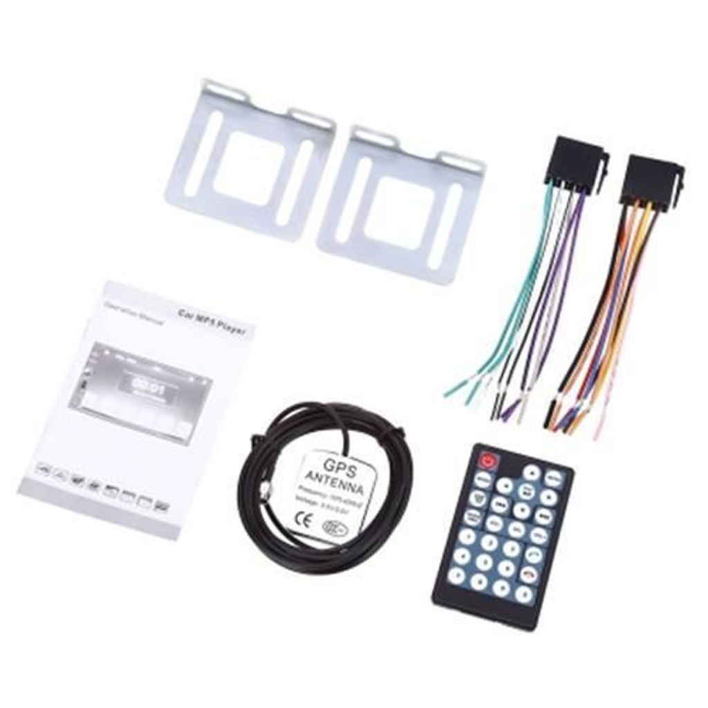 Package Contents: 1 x MP5 Player, 1 x GPS Antenna, 1 x Remote Control, 2 x Cable, 2 x Holder, 1 x English User Manual