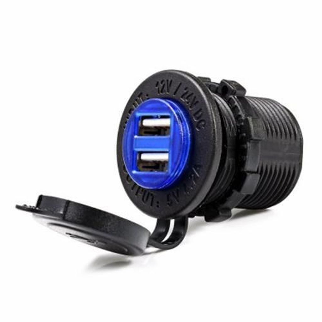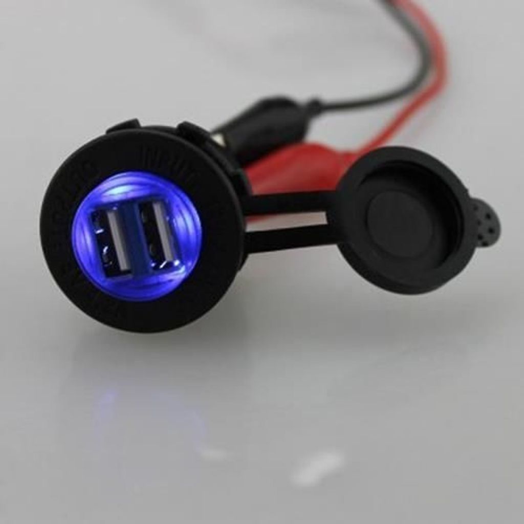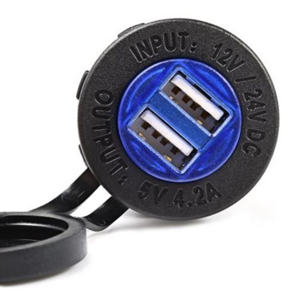 C941 5V 4.2A DOUBLE USB VEHICLE POWER PLUG BLUE WORK LIGHT WATER RESISTANT MOTORCYCLE SOCKET