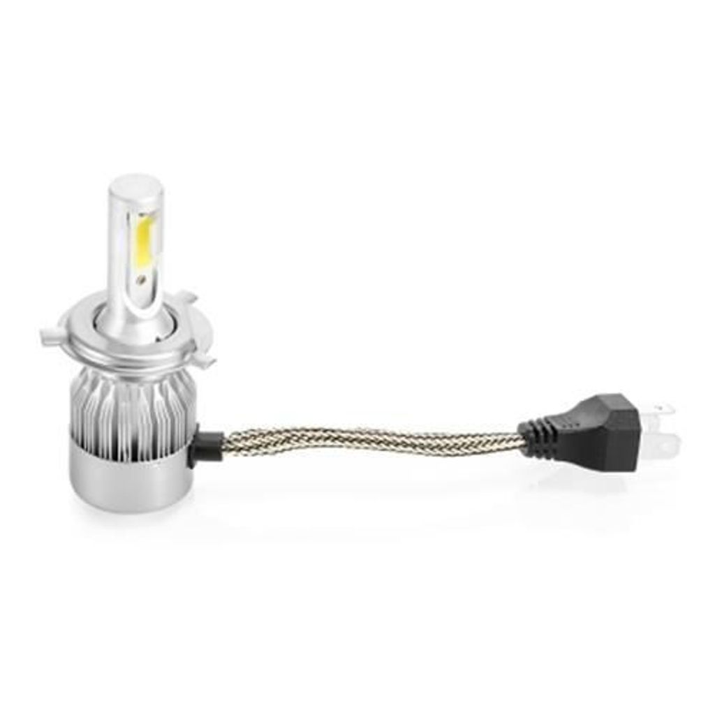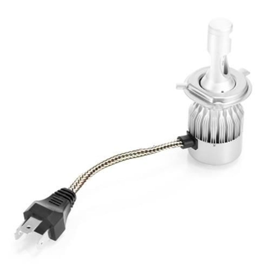 This universal LED headlight bulb is a replacement for H4 halogen bulbs found in some sport bikes, cruisers, 4-wheelers and autos. Convert your stock H4 motorcycle headlight to a high performance. Some slight modifications to the headlight clip or base may be required. These bulbs will fit the standard H4 base and plug