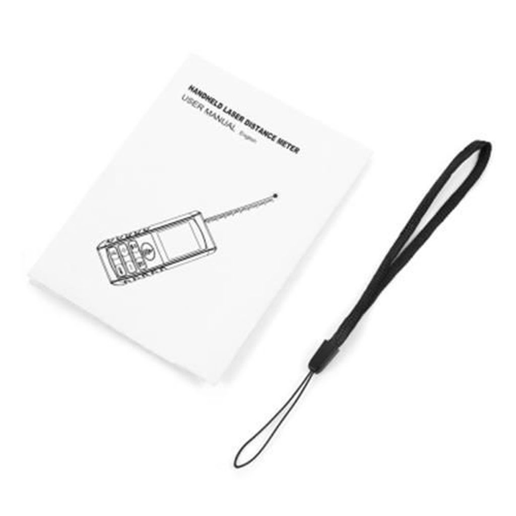 Package Contents: 1 x Laser Distance Meter, 1 x English User Manual, 1 x Anti-lost rope