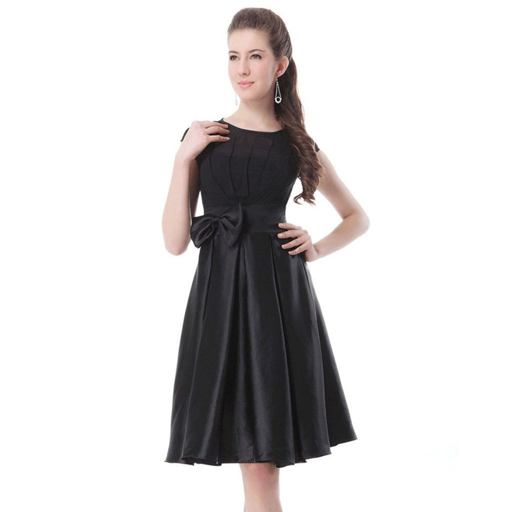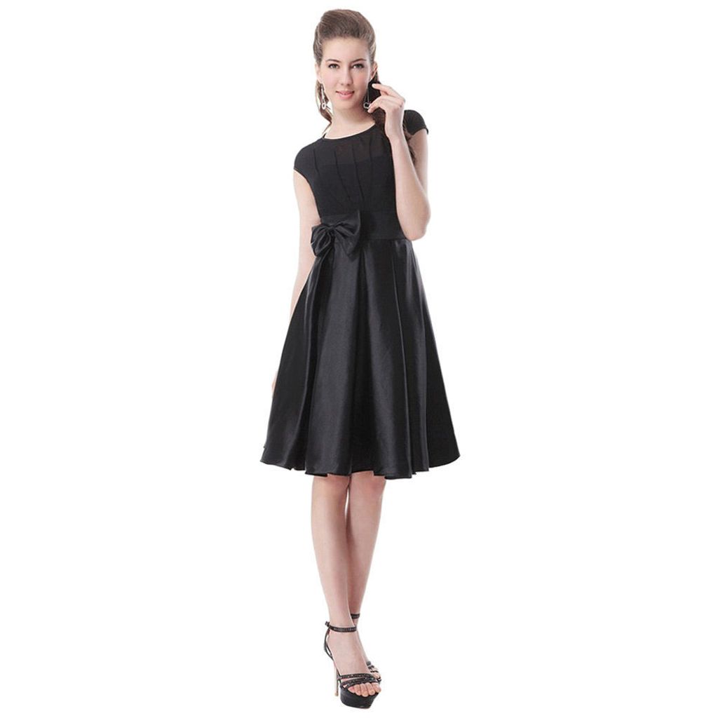 ELEGANT ROUND COLLAR BOWKNOT DESIGN BALL GOWN DRESS FOR WOMEN (BLACK, SIZE M/L/XL/2XL)