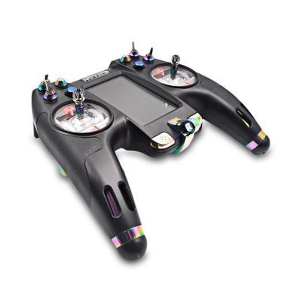 The NV14 is an amazing product. Moving away from traditional transmitter design, the NV14 has an unique ergonomic design, open source firmware, ports for expandability, a color touch screen display, and most important of all, it comes with hall gimbal.