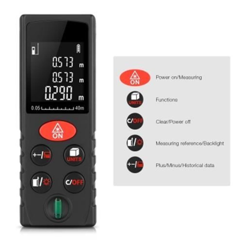 The measuring range of digital laser distance is from 0.05m to 40m, while its accuracy is 2mm, very quick, accurate and efficient