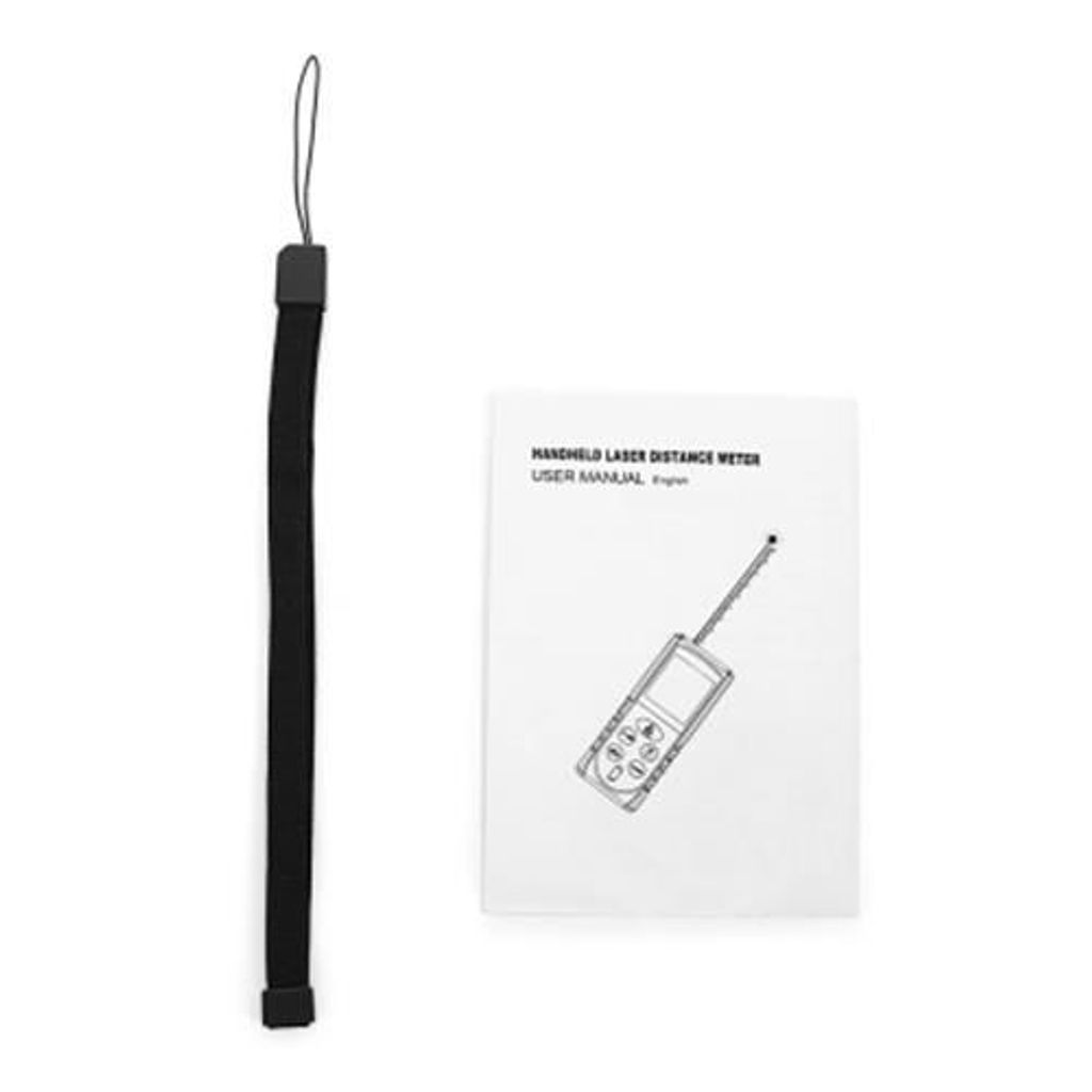 Package Contents: 1 x Laser Distance Meter, 1 x English User Manual, 1 x Anti-lost Rope